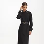 Элегантное трикотажное платье прямого кроя с разрезом по низу переда. Платье имеет слегка спущенную линию плеча. Горловина с женственным вырезом и широким воротником.