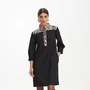 Платье прямого покроя из костюмной ткани. Модель сочетает в себе женственность и удобство.. Горловина переда декорирована планками с дизайнерскими пуговицами.В боковых швах сделаны шлицы для удобства ходьбы. Пояс идёт в комплекте .