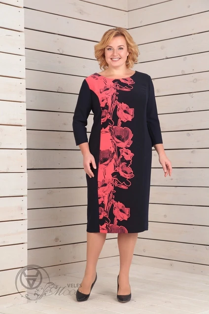Длина изделия (см): 109 Длина рукава (см): 45 Полуприлегающий крой красиво акцентирует внимание на достоинствах фигуры и скрывает недостатки. Спинка с V-образным вырезом. В среднем шве обработана потайная молния-застежка. Рукава длиной 3/4. Платье демонстрирует восхитительное сочетание однотона и ткани с цветочным рисунком.