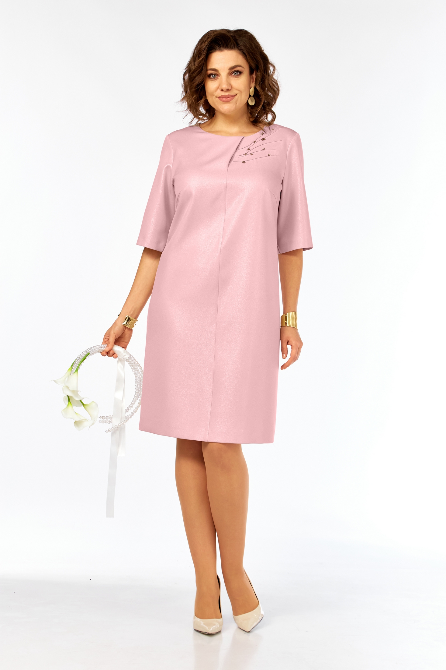 Платье 980 розовая пудра Ольга Стиль