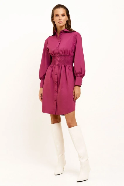 Элегантное женское платье на пуговицах станет находкой для демисезонного гардероба. В нем можно смело отправиться на учебу, работу, встречу, сходить в кино или в ресторан. Повседневное платье подойдет на весну и осень. Оно не парит, в нем комфортно как в теплые, так и в прохладные дни, особенно в сочетании с верхней одеждой. Хлопковое платье с длинным рукавом и отложным воротником слегка закруглено понизу, что делает модель кокетливой. Чтобы сделать фигуру стройнее, модельеры предусмотрели наличие широкой резинки по линии талии.