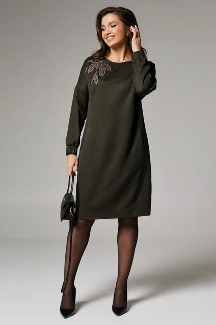 Эффектное лаконичное платье из мягкой немнущейся ткани. Удобный свободный силуэт и спущенная линия плеча актуальны в этом сезоне. Перед украшен вышивкой. Модный крой,мягкой формы рукава,присборенные по низу на широкую резинку,отрезные бочки фигурной формы с оформленными в них карманами ,всё выглядит безупречно помогает подчеркнуть образ молодой,энергичной и модной девушки,которая не боится экспериментов и стремится быть в центре внимания.Застёжка сзади на потайную молнию в среднем шве.