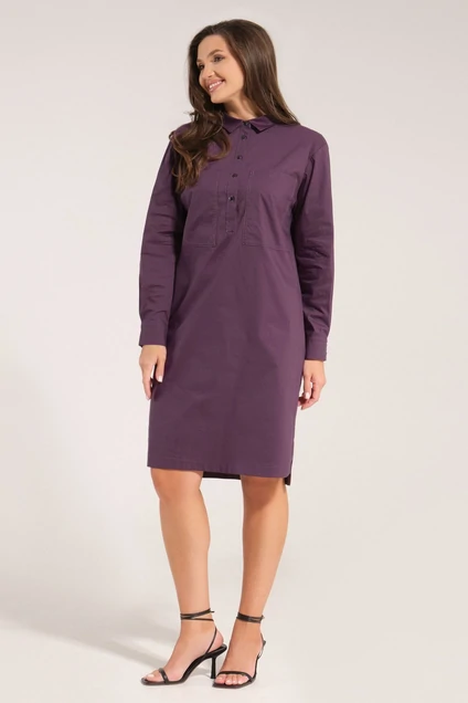 Молодежное платье из натуральной хлопковой ткани. Платье свободного кроя, с воротником, с застежкой на петли и пуговицы на планке, длиной до коленей. Рукава длинные втачные, по низу манжеты с петлями и пуговицами. В боковых швах и на груди карманы. Отличный вариант для отдыха и повседневных дней.