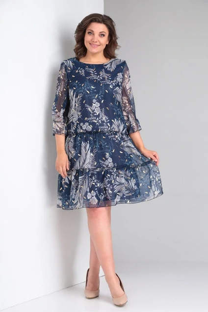 Платье женское предназначено для повседневной носки. Платье Асилуэта, с двумя притачными воланами по низу. Рукав втачной, с одним притачным воланом по низу, Платье на подкладке. Длина платья 100см. Длина рукава 43см