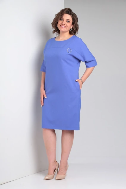 Платье женское полуприлегающего силуэта, длиной за колено.Платье отрезное по линии талии. Верх переда и спинки выполнен из ткани в полоску. Низ переда платья со сступенькой. Горловина без воротника, округая. Застежка на потайную тесьму-молнию в левом боковом шве. Рукав втачной, одно шовный,короткий, с манжетой. Длина платья 100см. Длина рукава 23см
