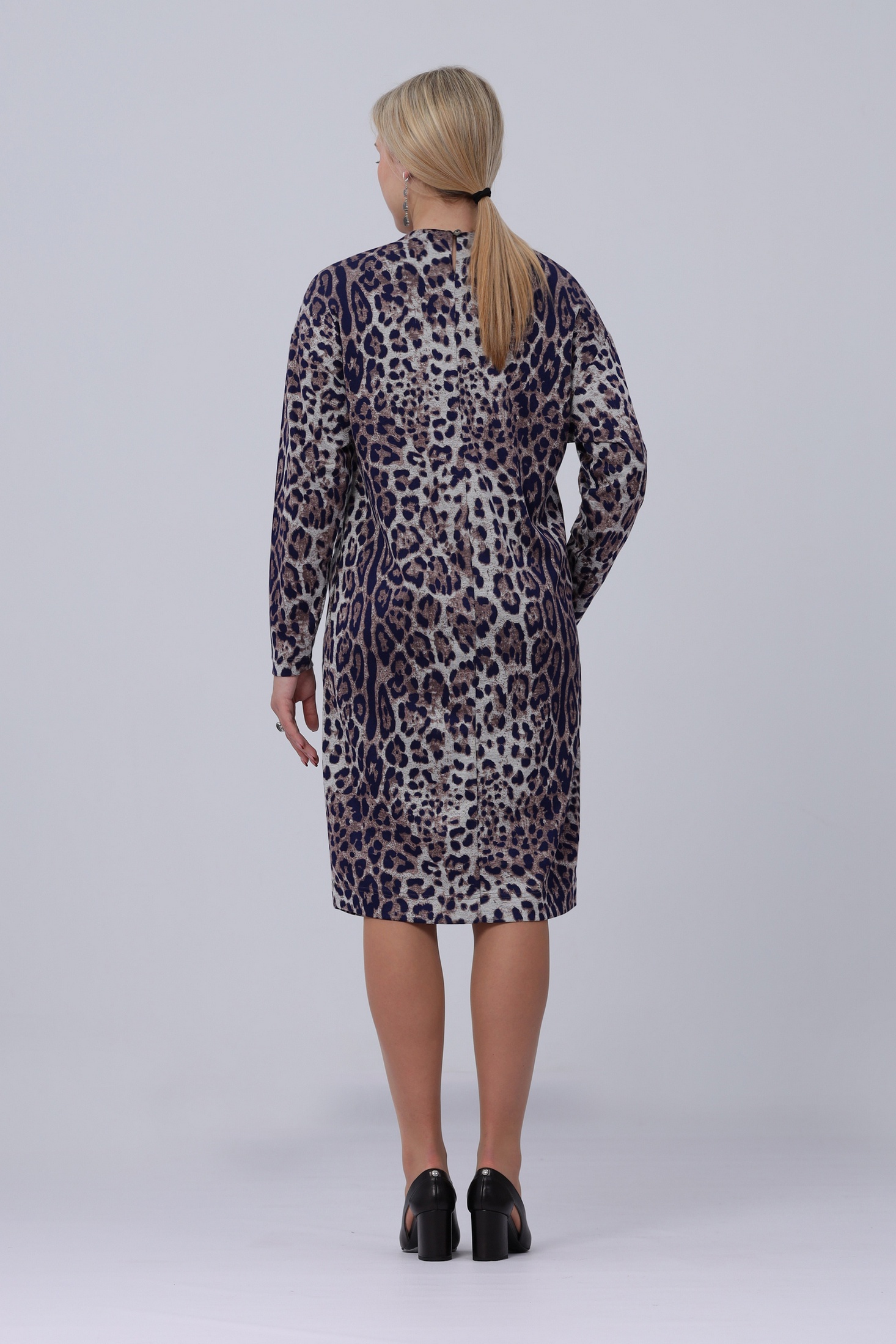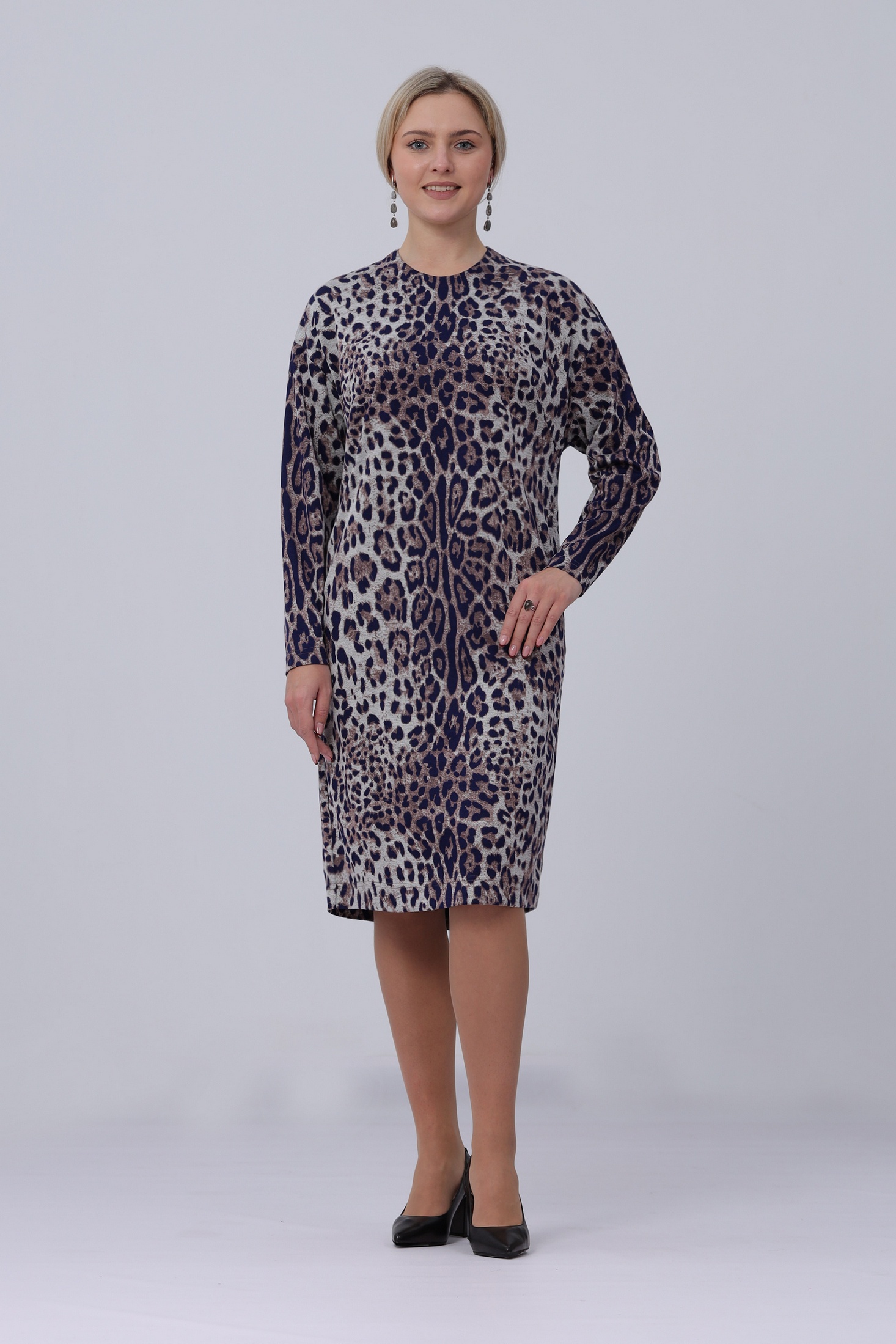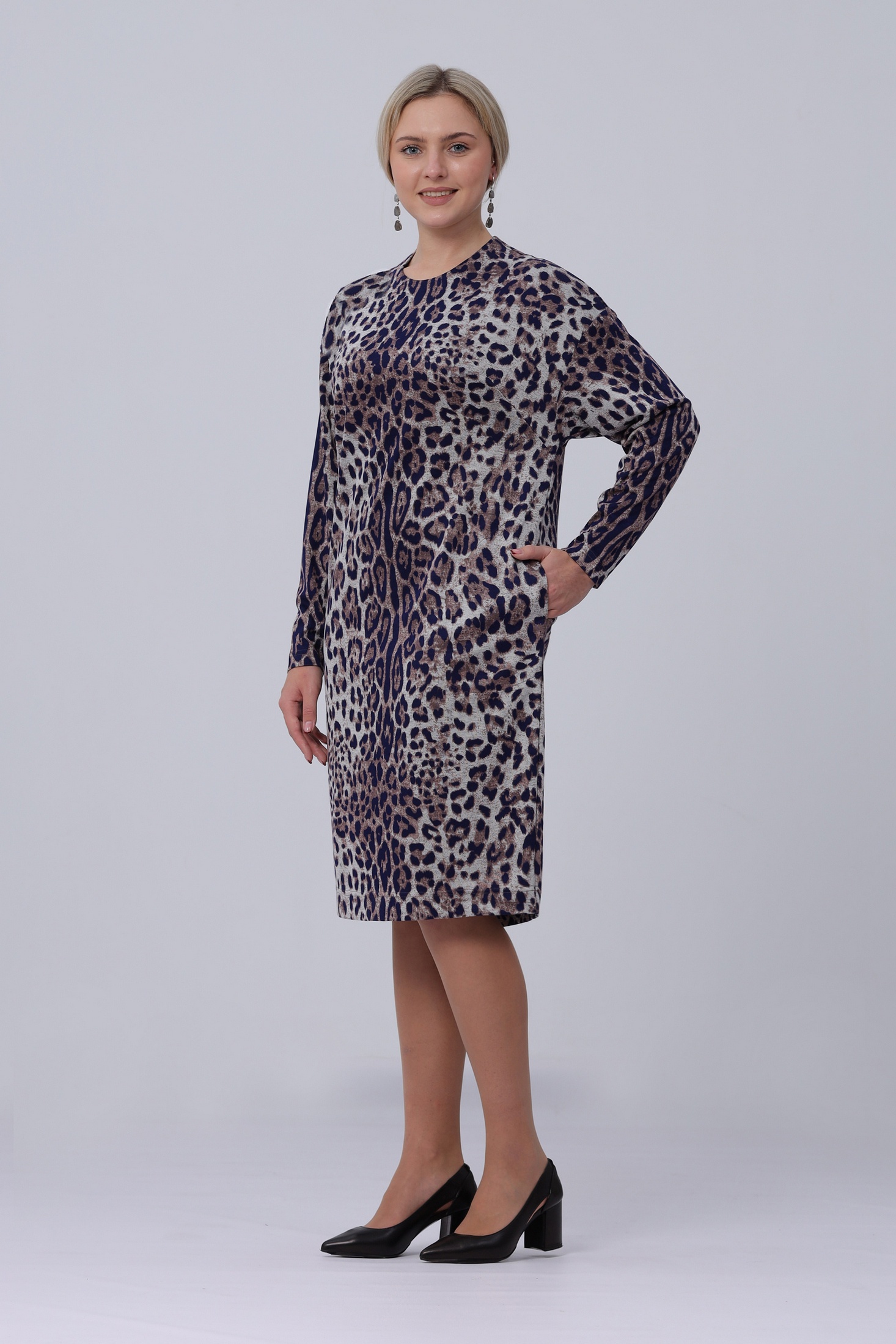 Платье женское полуприлегающего силуэта заужено к низу. Перед с нагрудными вытачками из боковых швов. Спинка со средним швом. Рукав свободный со спущенным плечом, заужен к низу. Карманы в боковых швах. На воротнике есть пуговица сзади, пристёгивается навесной петелькой.Размеры 50-52: Длина рукава - 51 см. Длина платья по спинке - 107 см.Размеры 54-56: Длина рукава - 52 см. Длина платья по спинке - 108 см. Размеры 58-60: Длина рукава - 52 см. Длина платья по спинке - 109 см.