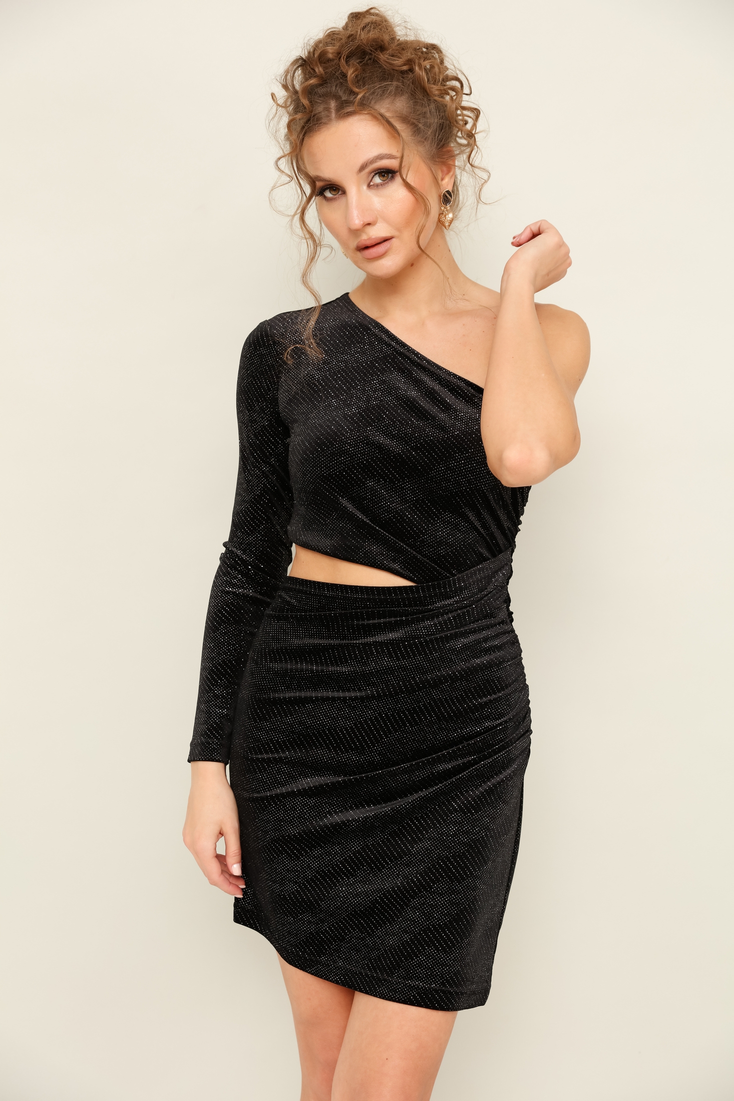 Платье прилегающего силуэта, с боковым вырезом. Ткань велюр с напылением блесток