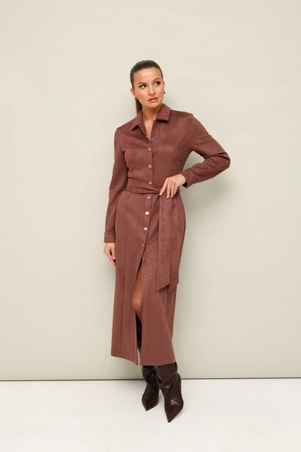 Силуэтное платье в длине миди, выполнено из экозамши.