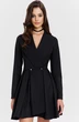 Платье полуприлегающего силуэта, выполненное на запах, длиной до середины бедра. Платье отрезное по линии талии. Лиф спинки со средним швом и талиевыми вытачками. Лиф переда с рельефами от пройм до подреза по талии. Юбка платья с фигурной линией низа, со складками по шву притачивания к лифу. Воротник пиджачного типа. Рукава двушовные, втачные, длинные. Застежка по переду на пришивную кнопку, декорирована отделочными пуговицами.