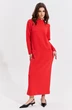 Платье свободного кроя, длиной до щиколотки. По спинке подрез чуть выше линии бедер. Нижняя часть спинки со средним швом, в котором обработана шлица. Перед с подрезом выше линии бедер. Верхняя часть переда со средним швом, с нагрудными вытачками от него. В подрезе обработаны карманы. Рукава длинные, одношовные, втачные. По горловине стойка. По спинке застежка на декоративную тесьму-«молнию».