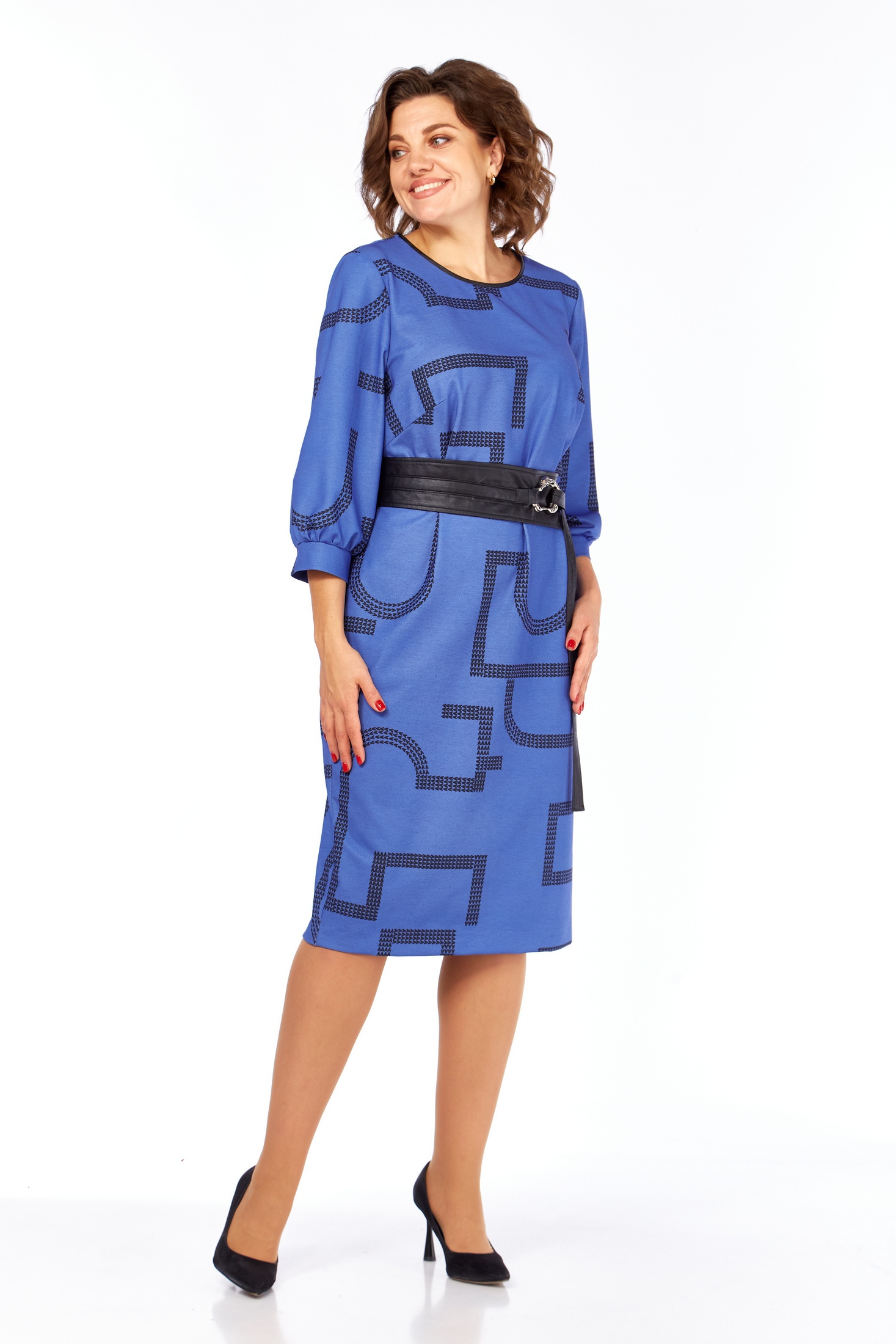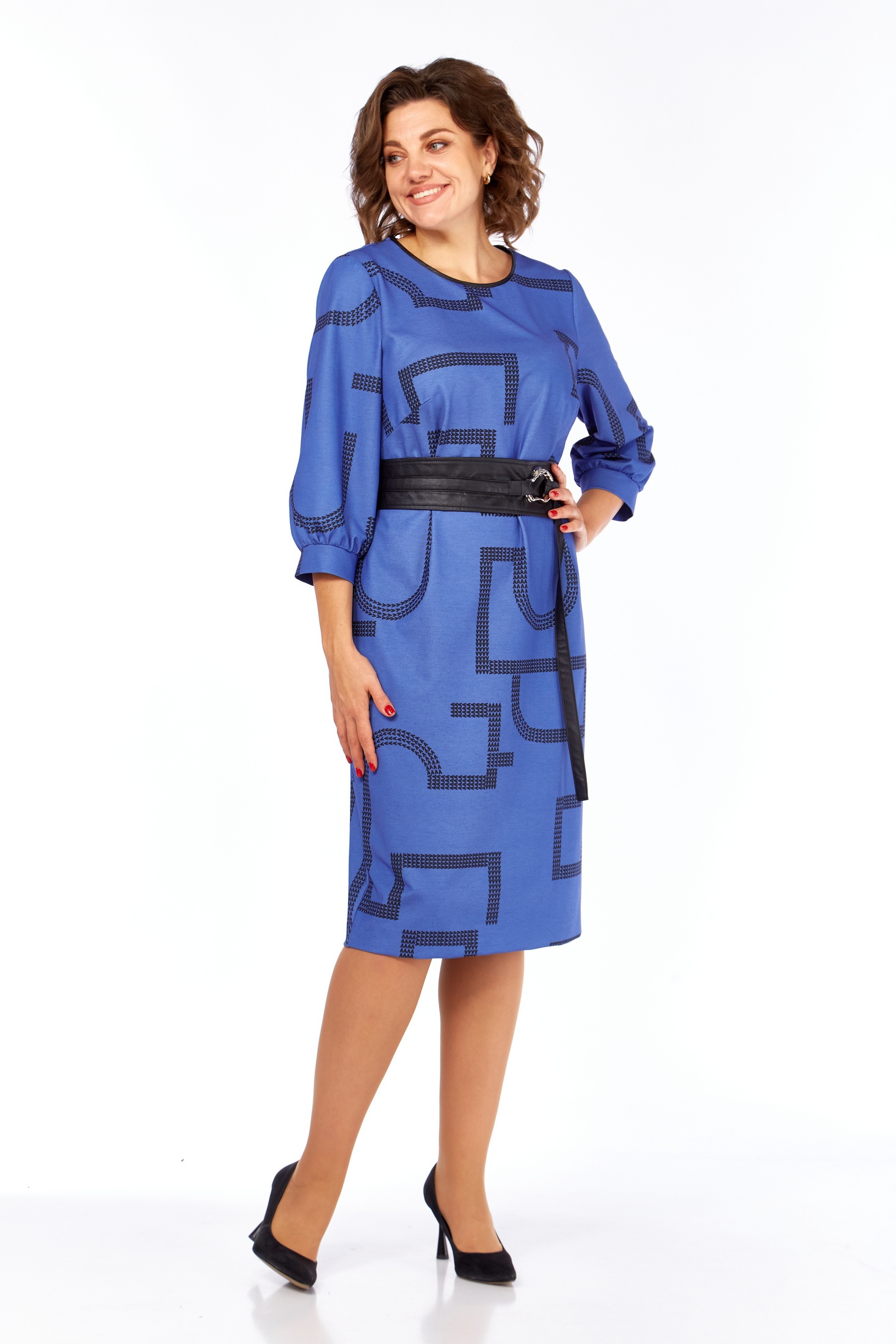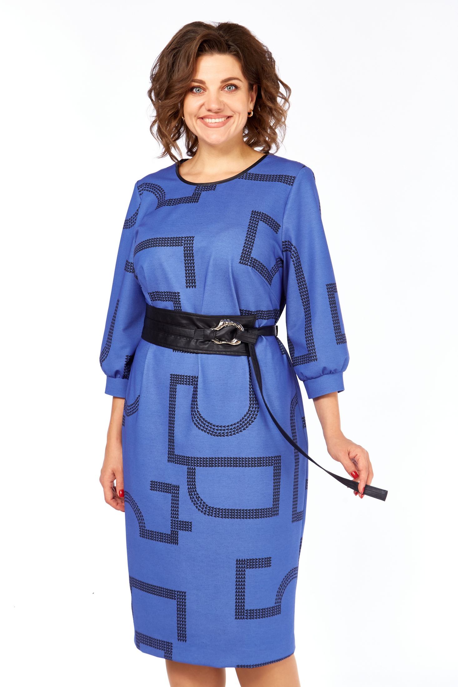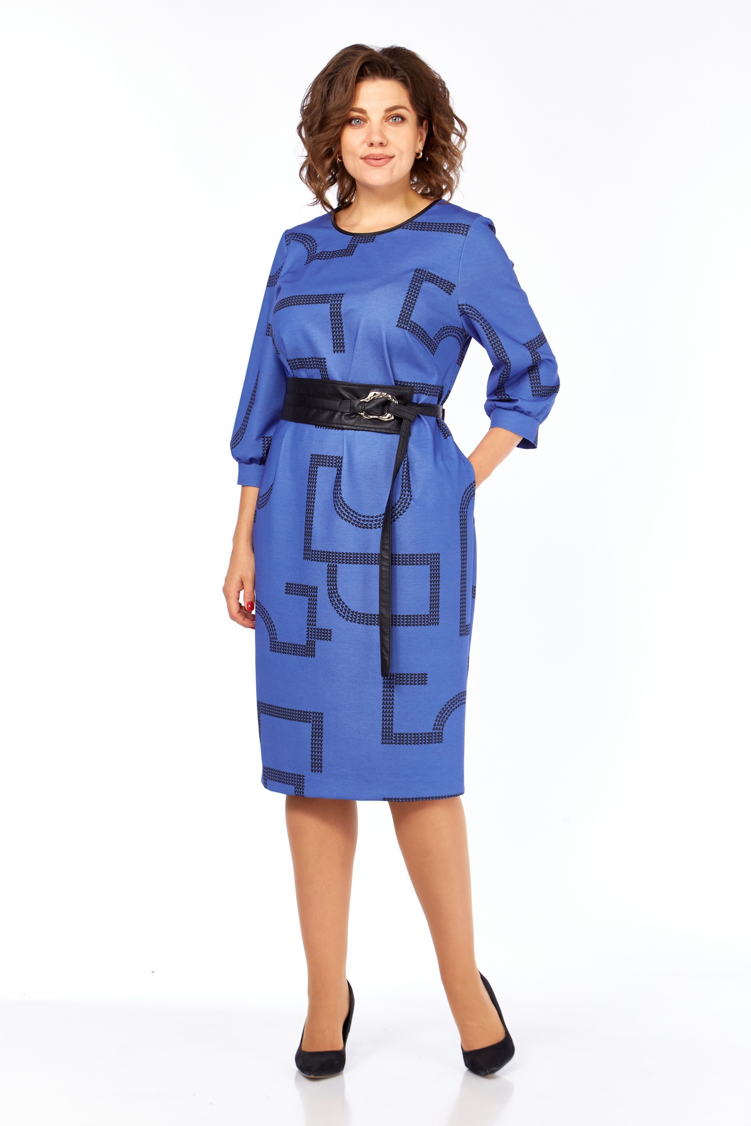 Платье женское прямого силуэта выполнено из высококачественного трикотажного полотна с дизайнерским принтом. В боковых швах имеются функциональные карманы. Перед с округлым вырезом, оформлен кожаным кантом. Спинка прямая со средним швом. Рукав одношовный втачной длиной ¾. В комплекте идет кожаный съемный пояс. Идеально для повседневной носки, чтобы чувствовать себя свободно и непринужденно.