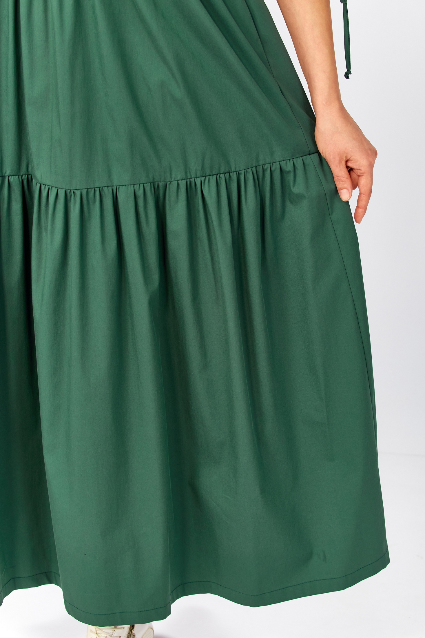 Платье 1024 изумруд — это выбор от коллекции бренда Rishelie для тех, кто ценит комфорт и стиль. Изготовлено из мягкого дышащего хлопка с добавлением нейлона и спандекса, это платье отличается свободным силуэтом и женственной завышенной талией. Округлая горловина и рукава до локтя с завязками подчеркивают оригинальность дизайна. Летний сезон освежит вас изумрудный цвет изделия, который гармонично сочетается с любыми аксессуарами. Два волана по низу платья добавляют легкости и воздушности, а скрытые карманы в боковых швах — функциональности. Идеально подходит для романтических прогулок, летних вечеринок и повседневного использования.