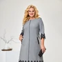 Платье женское предназначено для повседневной носки. Платье А-силуэта, длиной до середины икры. Перед с отрезной кокеткой из отделочной ткани, с 2-мя нагрудными вытачками. Спинка с отрезной кокеткой из отделочной ткани. Низ платья с приточной планкой из отделочной ткани м притачного волана с лёгкой сборкой по нижнему срезу. Горловина "о"образная обточная без воротника. Рукав втачной короткий, одно шовный с декорированным вырезом из отделочной ткани, собранной на эластичную тесьму. Платье на подкладке. Платье без плечевых накладок. Длина спинки 105 см, длина рукава 25 см.