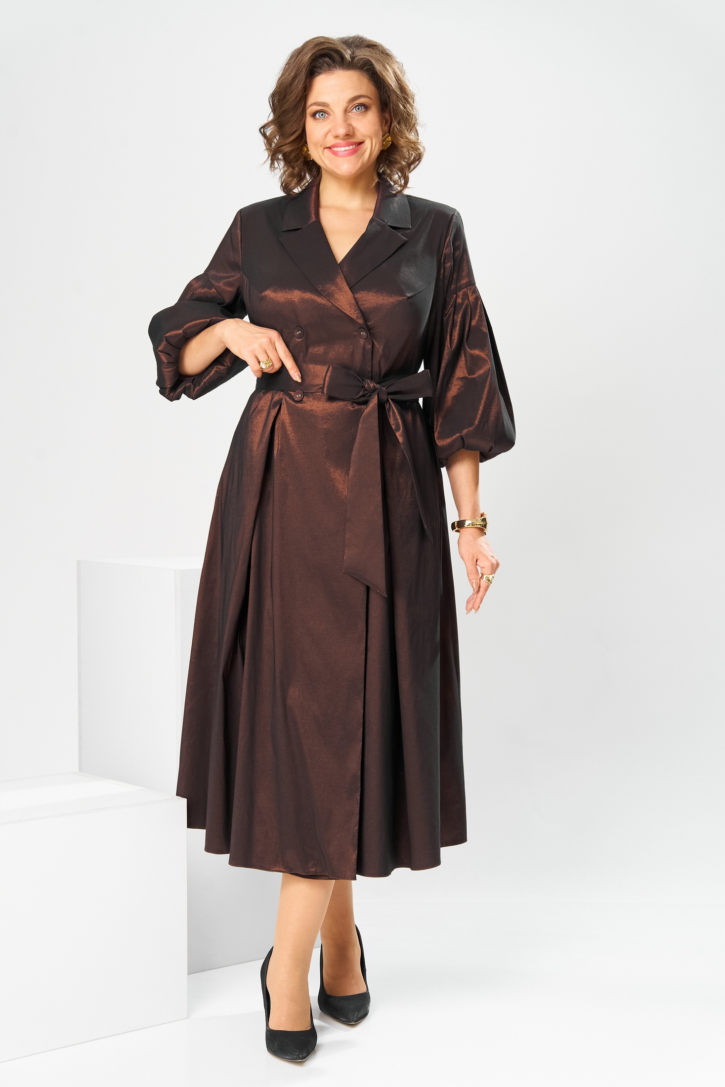 Платье 1-2837 коричневый Romanovich style идеально подчеркнет вашу элегантность на любом мероприятии. Коллекция бренда Romanovich style представляет приталенное платье длиной миди с изысканными деталями — карманы в боковых швах и съёмный пояс делают его удобным и функциональным. Изготовлено из 100% полиэстера, что обеспечивает легкость и долговечность материала. V-образный вырез и пиджачный воротничок добавляют женственности, а рукава длиной 3/4 с эластичной тесьмой создают изящный силуэт. Прекрасно подходит для осенних и зимних событий, подчеркивая ваш стиль благодаря глубокому коричневому цвету. Длина спинки платья составляет 130 см.