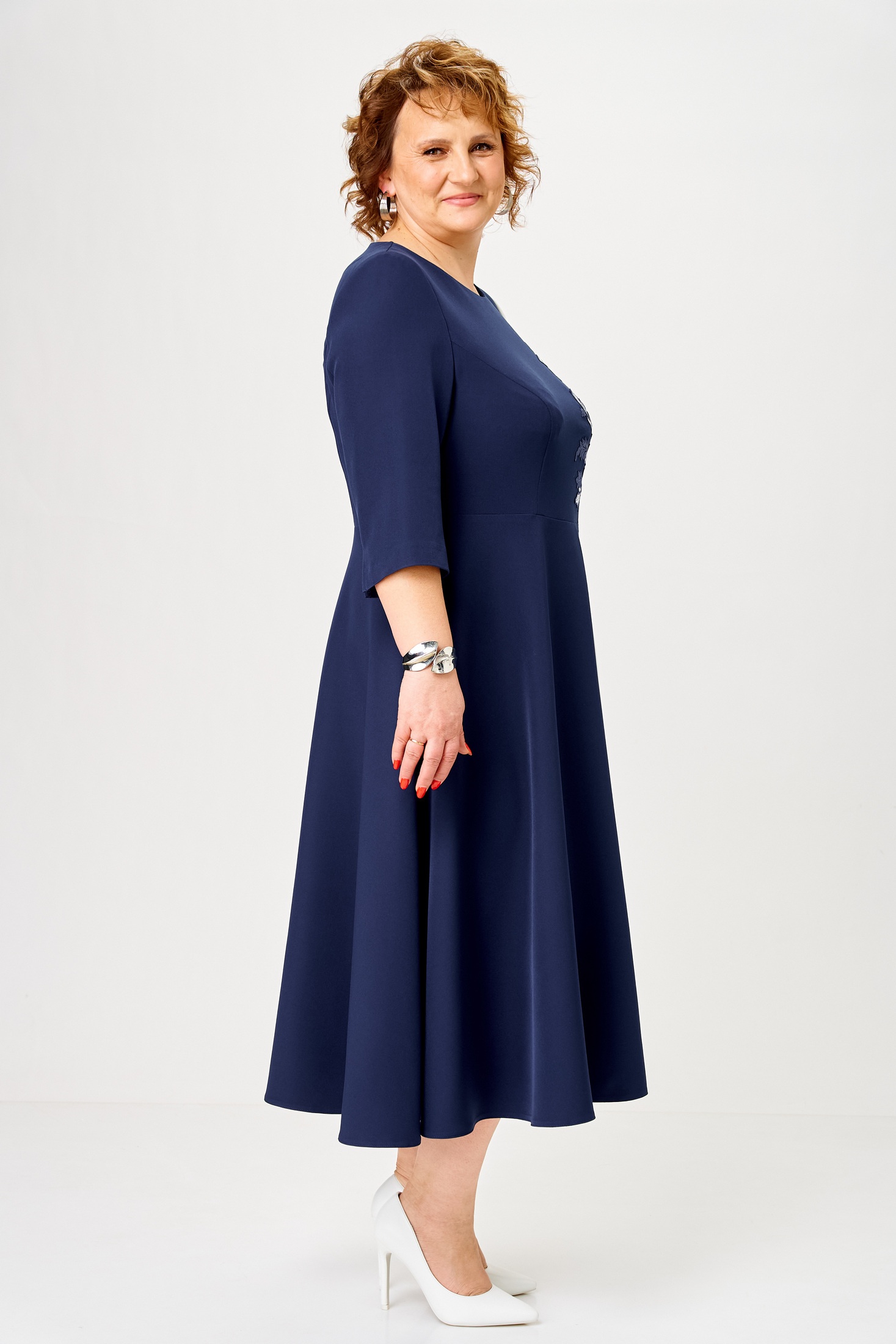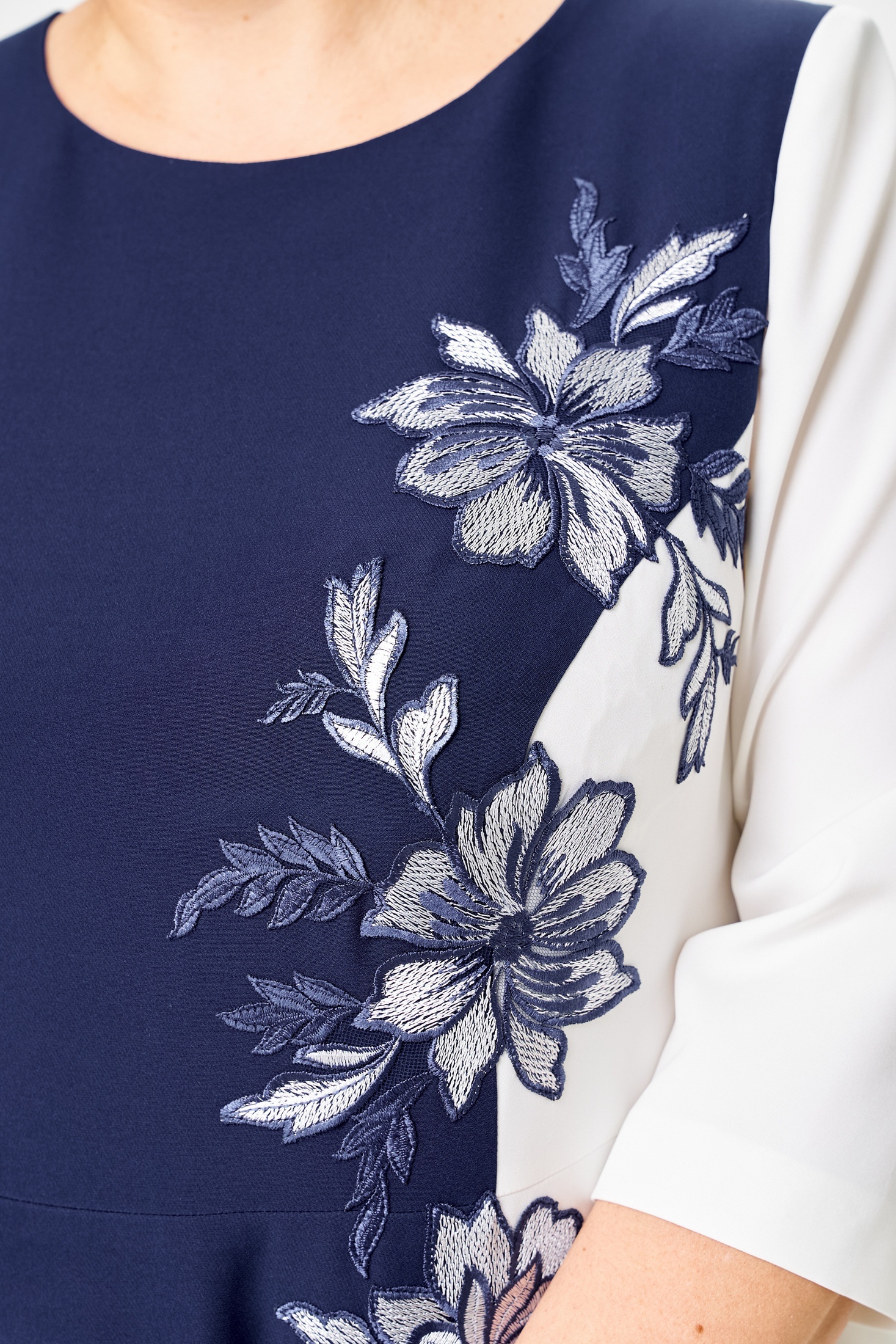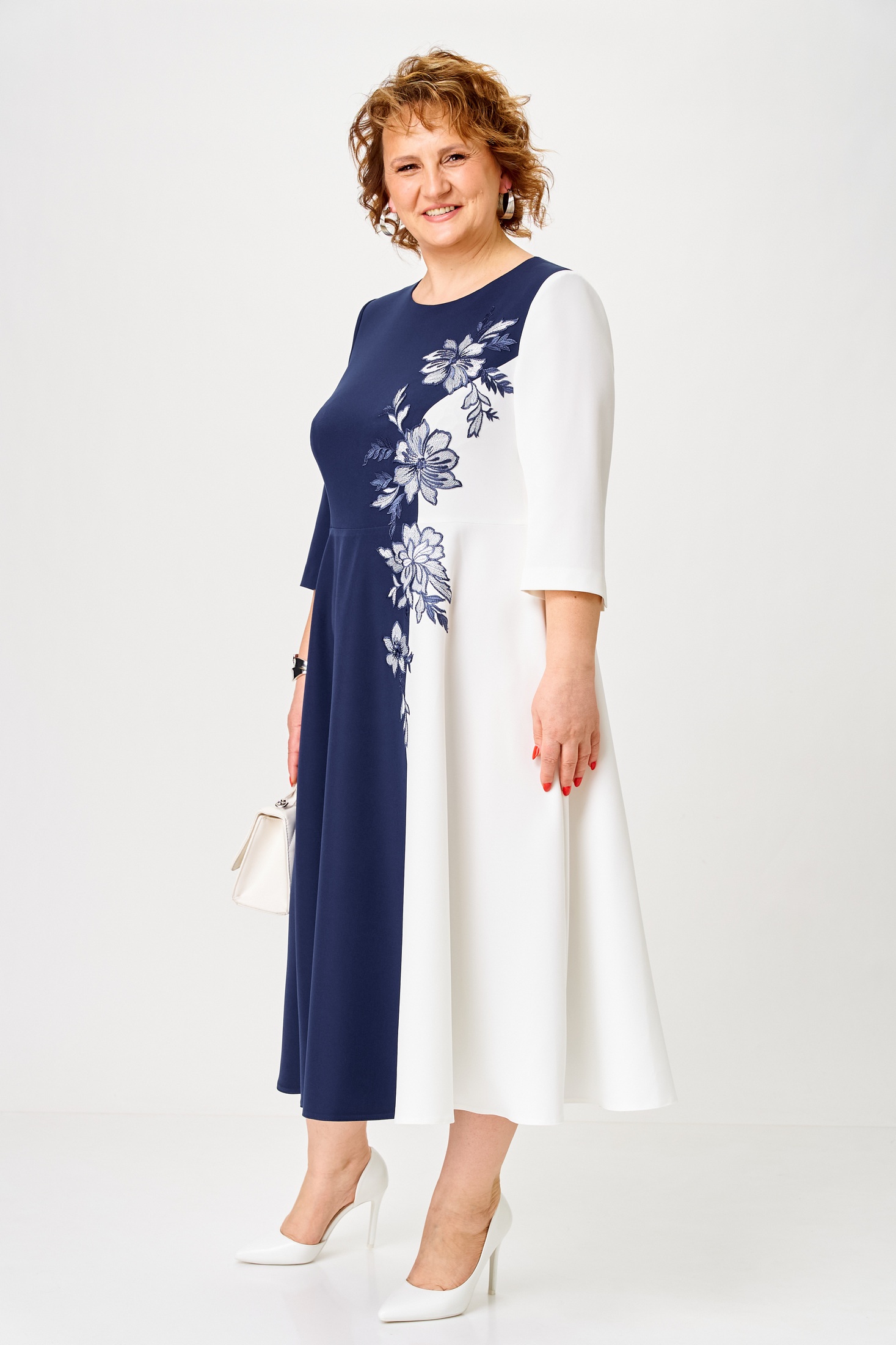 Платье 1-2905 сине-белый Romanovich style станет незаменимым элементом вашего гардероба для торжественных мероприятий. Коллекция бренда Romanovich style воплощает изящество и стиль в каждой детали. Платье выполнено из комбинации полиэстера, вискозы и спандекса, что обеспечивает комфортный и легкий силуэт. Миди-длина и отрезная талия подчеркивают женственный облик, а цветочная аппликация добавляет уникальности. Круглый вырез и потайная молния в боковом шве обеспечивают удобство в носке. Нарядный фасон и сочетание синего и белого цветов делают платье идеальным для весеннего и летнего сезона. Длина спинки платья составляет 118 см, что добавляет элегантности вашему образу. Длина рукава 44,5 см.