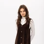 Платье прямого силуэта, длина выше колена, на подкладке. Отрезное по линии талии, со вставленой эластичной тесьмой,которая фиксирует платье на талии. Форма горловины - круглая. Рукава втачные длинные, собраны по низу на эластичную тесьму. Платье легкое, струящееся выполнено из ткани, в составе которой пэ 100%.
