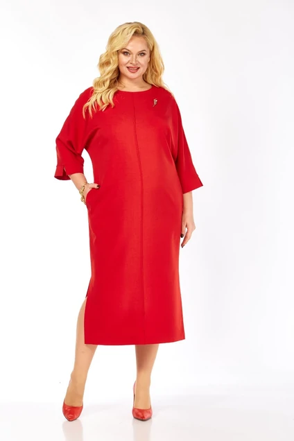 Силуэт полуприлегающий. Рукав цельнокроеный, «летучая мышь». Длина рукава от горловины 57 см. Горловина закруглённая, на обтачке. По центру переда застрочен защип (стрелка). Спинка со средним швом. Внизу боковых швов выполнены разрезы. Длина по спинке 116 см. В Боковых швах карманы. Ткань — костюмно-плательная.