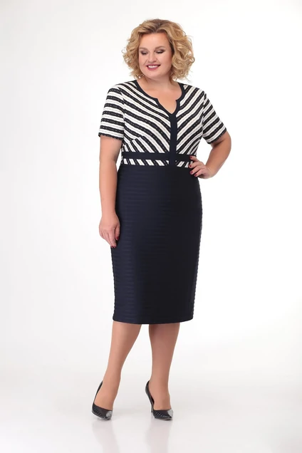 Платье полуприлегающего силуэта, выполнено из трикотажных тканей 2-ух видов.