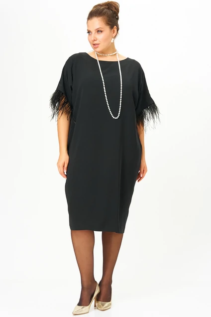 Элегантное чёрное платье балон представляет собой идеальное сочетание простоты и изысканности. Модель с короткими рукавами, украшенными съемными декоративными манжетками на пуговицах, добавляет изысканный акцент. Уникальная конструктивная складка на спинке не только привлекает внимание к интересному виду сзади, но и обеспечивает дополнительный комфорт и свободу движений. Это платье является идеальным выбором для тех, кто ценит утончённость и комфорт в одежде.