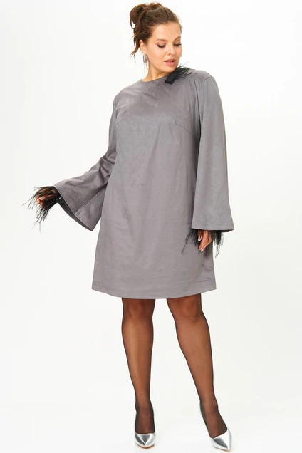 Съемные декоративные манжеты придают романтичность и нарядность образу. Манжета выполнена из атласной ткани и декорирована "перьями". Платье А-силуэта.