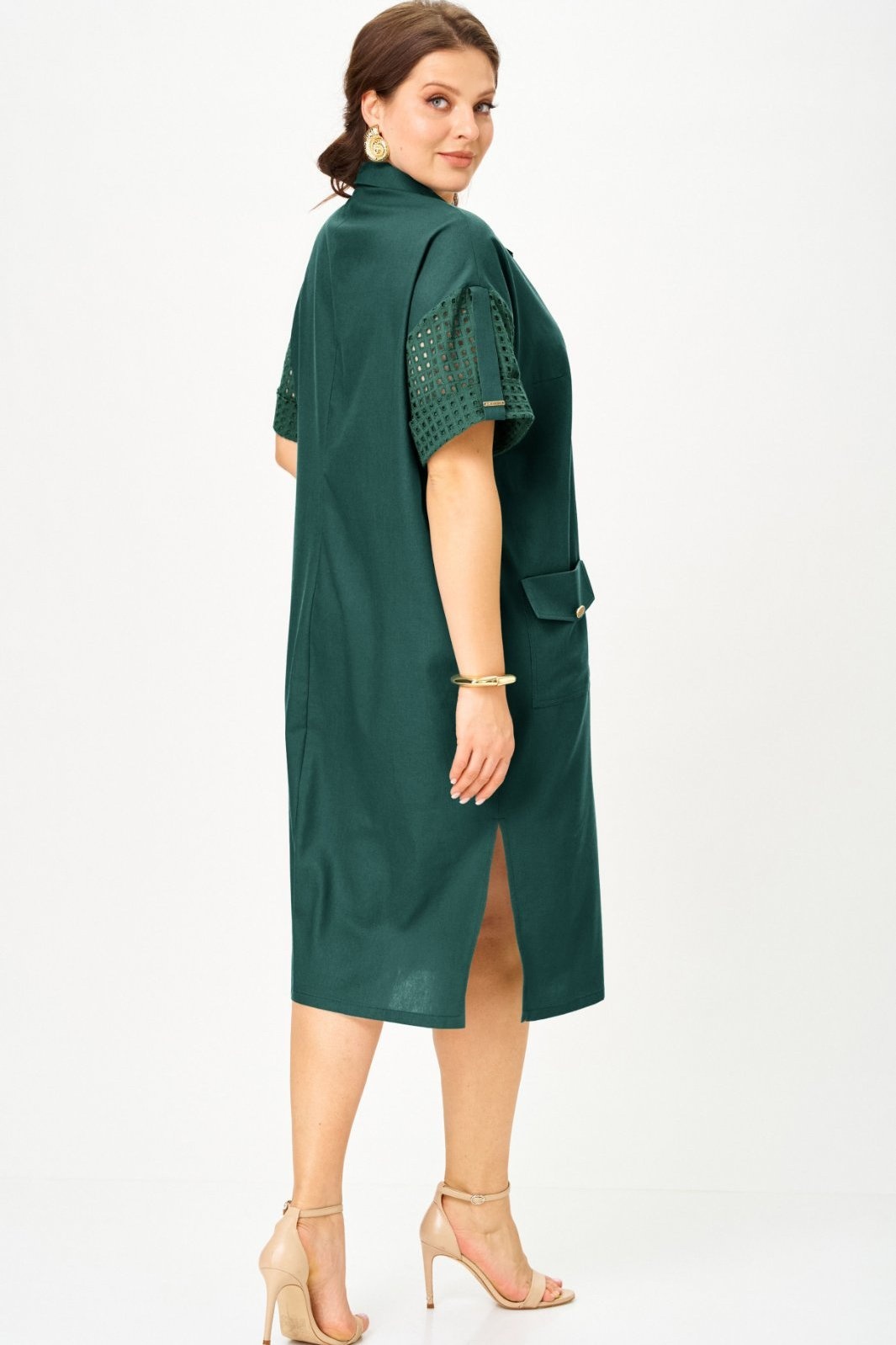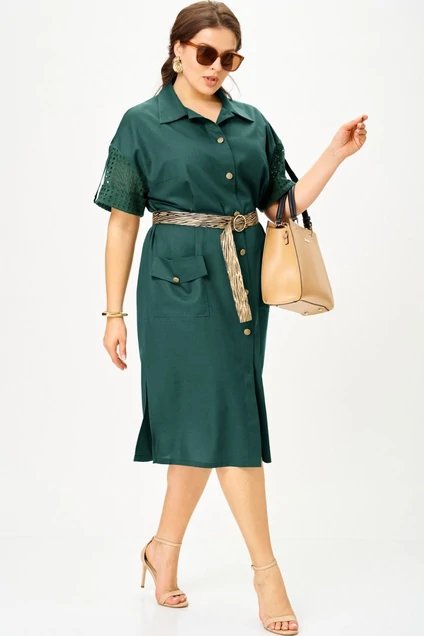 Платье 11319 бирюза SOVA — универсальный выбор для любого повода. Коллекция бренда SOVA представляет наряд в стиле рубашки из высококачественного смесового льна и хлопкового шитья, обеспечивая комфортную носку в жаркие дни. Фасон с поясом из ременной ленты акцентирует талию, создавая романтичный образ. Платье имеет накладные карманы и отложной воротник-стойка, которые добавляют функциональности и стиля. Миди длина с разрезами делает его идеальным для офиса, вечеринки или отдыха на пляже. Короткий широкий рукав обеспечивает легкость и стильный внешний вид. Этот бирюзовый наряд станет прекрасным вариантом для лета и любого торжества.