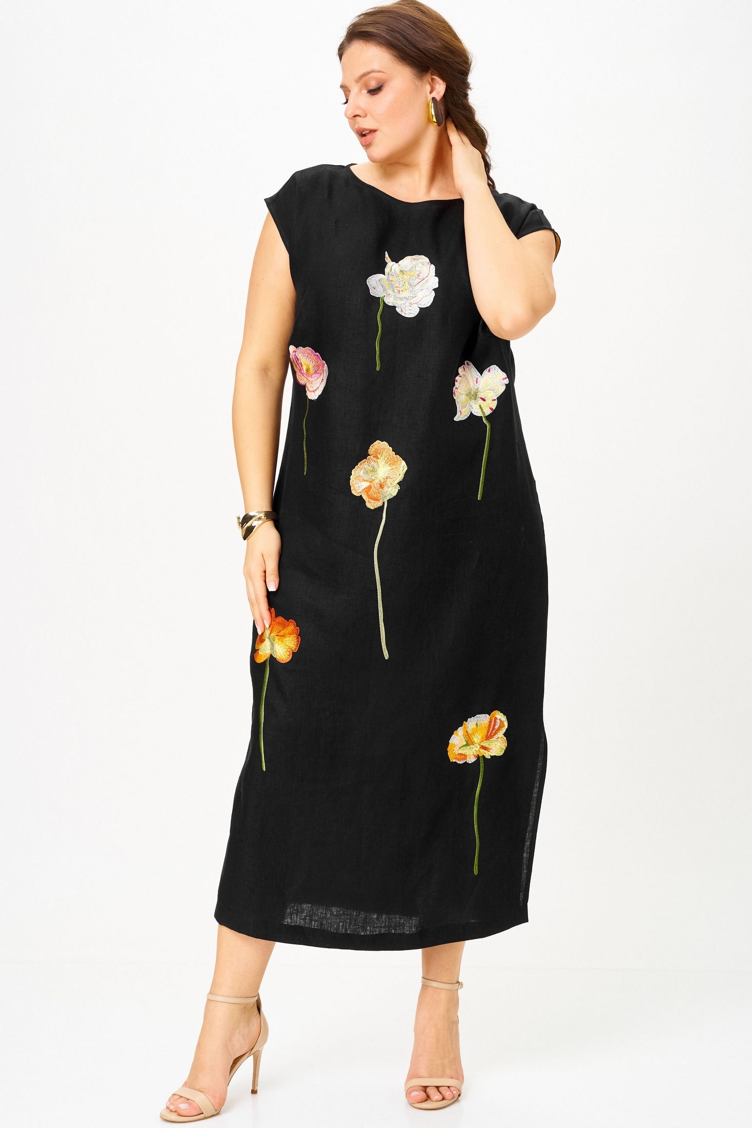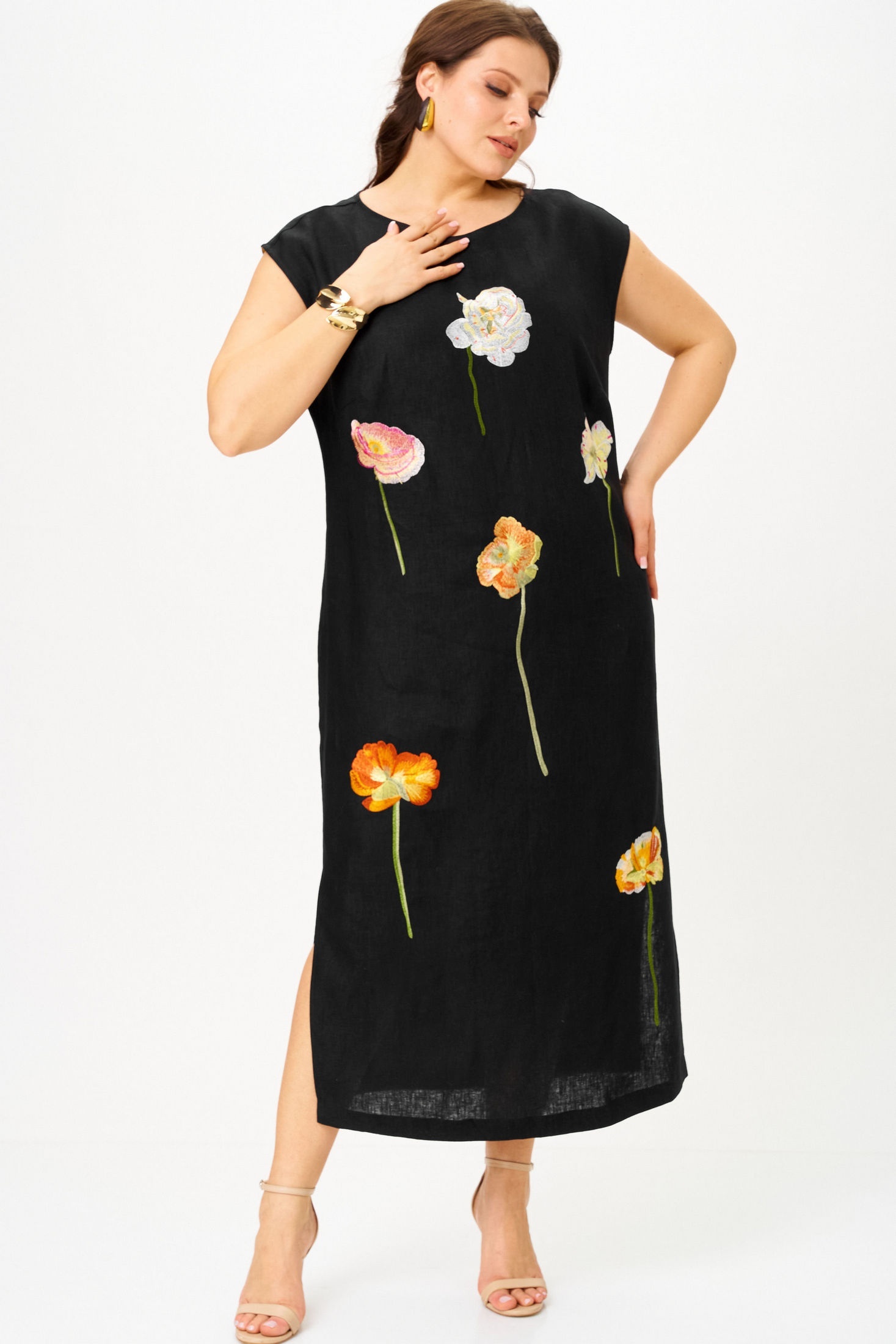 Платье 11326 SOVA — это воплощение комфорта и стиля. Изготовлено из 100% льна, оно обеспечивает легкость и воздухопроницаемость, идеальные для жаркого лета. Коллекция бренда SOVA предлагает прямой силуэт со спущенной линией плеча. Яркая цветочная вышивка придаёт платью этнический и аутентичный вид. Удобство использования дополняют разрезы в боковых швах и функциональная молния на спинке. Сдержанный черный цвет с яркими акцентами позволяет носить это платье как на каждый день, так и на праздники и вечеринки. Идеальный выбор для тёплого сезона!