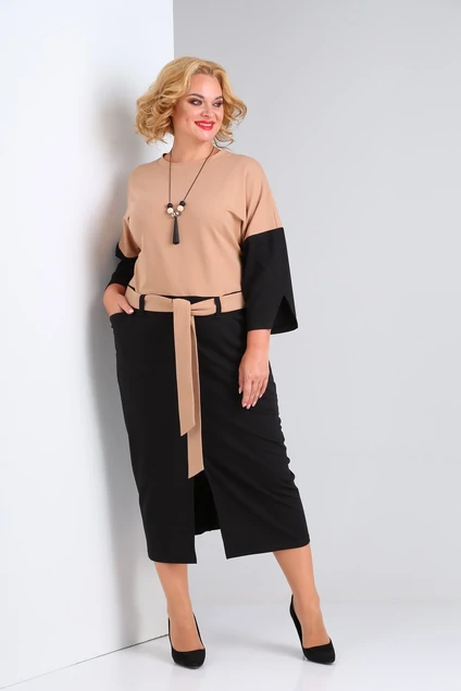 Платье 2123 черный + бежевый SOVITA