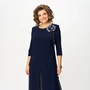 Платье женское полуприлегающего силуэта, рсширенное к низу, с втачным рукавом. Горловина v- образной формы, с имитацией запаха. Платье по переду отрезное по линии талии. Спинка со средним швом. В левом боковом шве обработана застежка на потайную тесьму – молнию. Передняя часть выполнена с имитацией застежки на пуговицы и декоративными клапанами. Рукав длиной ¾, с притачной манжетой.