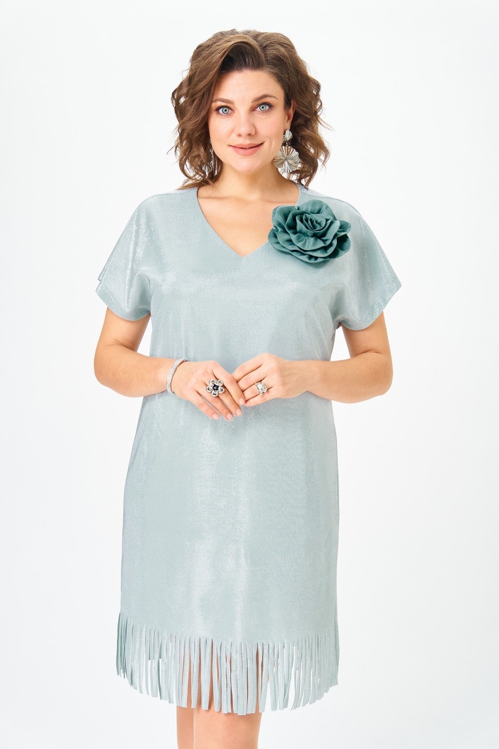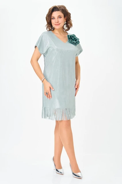 Платье нарядное с пайетками и бахромой прямого кроя, выполнено в комплектации из двух предметов. Линия плеча спущена. Вырез горловины v-образный. Нижнее платье полуприлегающего силуэта, на регулируемых бретелях. По линии груди вытачки. Украшение входит в комплект!