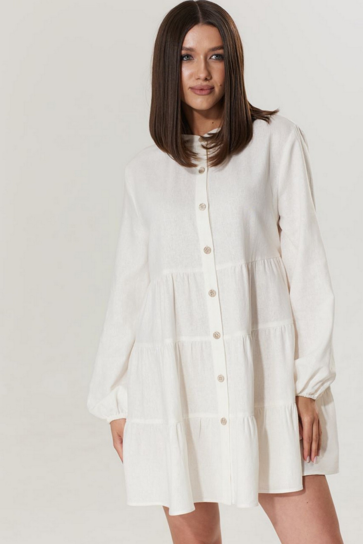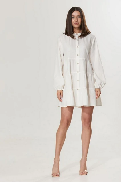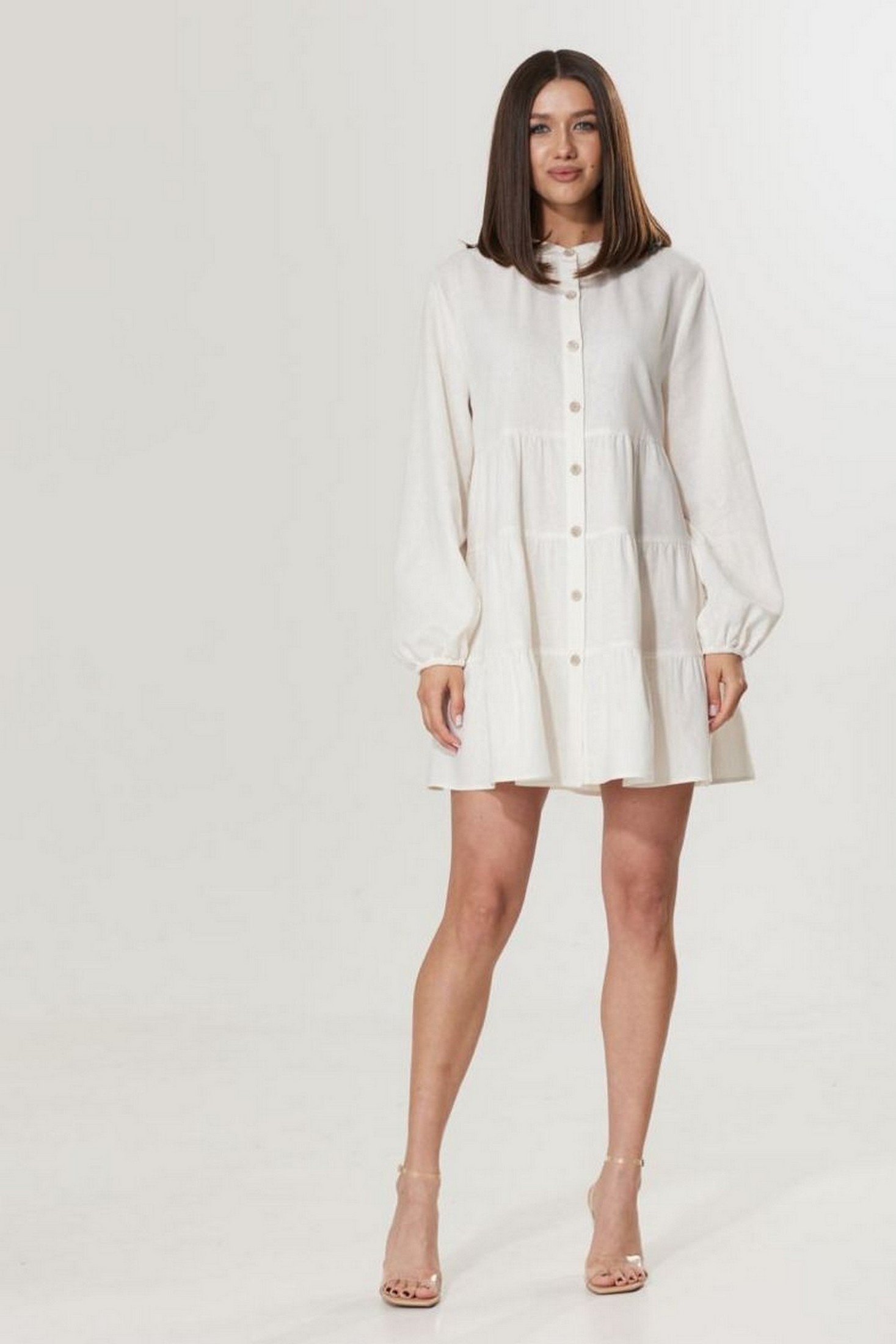 Платье 220 T.N.D от коллекции бренда T.N.D — это изящество и комфорт в одном флаконе. Изготовлено из лёгкого льна с добавлением вискозы, оно идеально подходит для тёплых летних дней. Свободный А-силуэт с тремя ярусами и округлой горловиной на стойке подчёркивает непринуждённый стиль. Центральная застежка на пуговицах и длинные рукава с эластичной тесьмой добавляют практичности. Идеально для повседневного образа или вечеринки, особенно в молочном цвете, который гармонично впишется в любой гардероб. Это платье станет незаменимой частью вашего летнего гардероба.