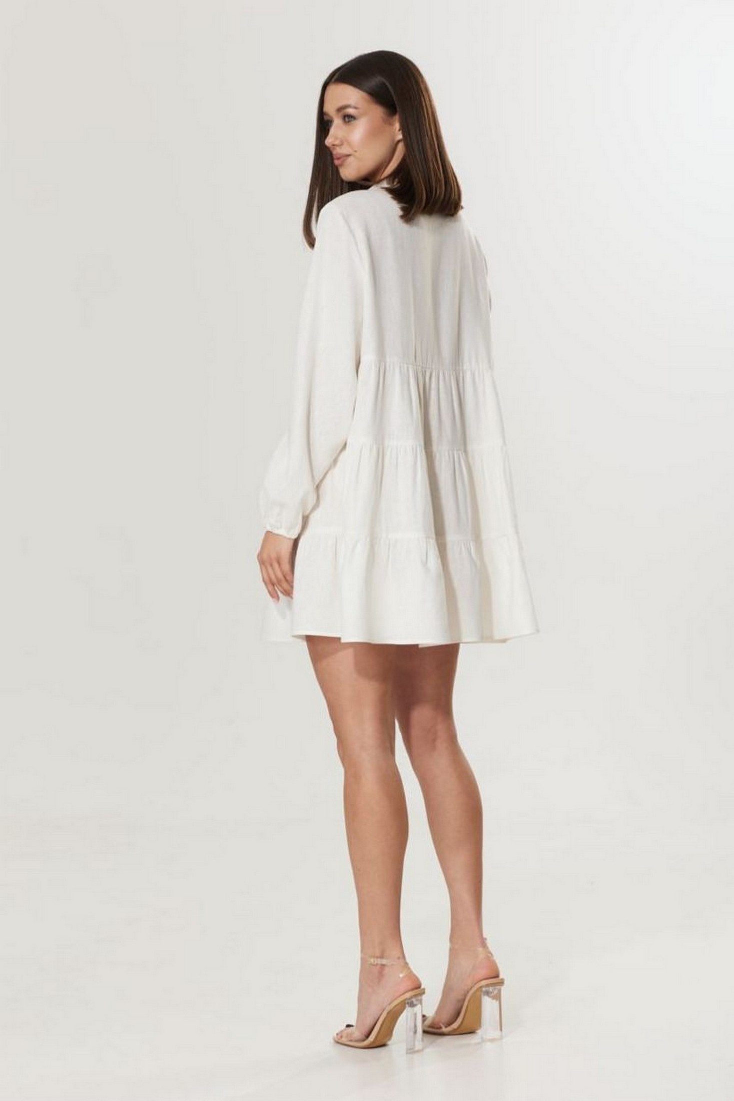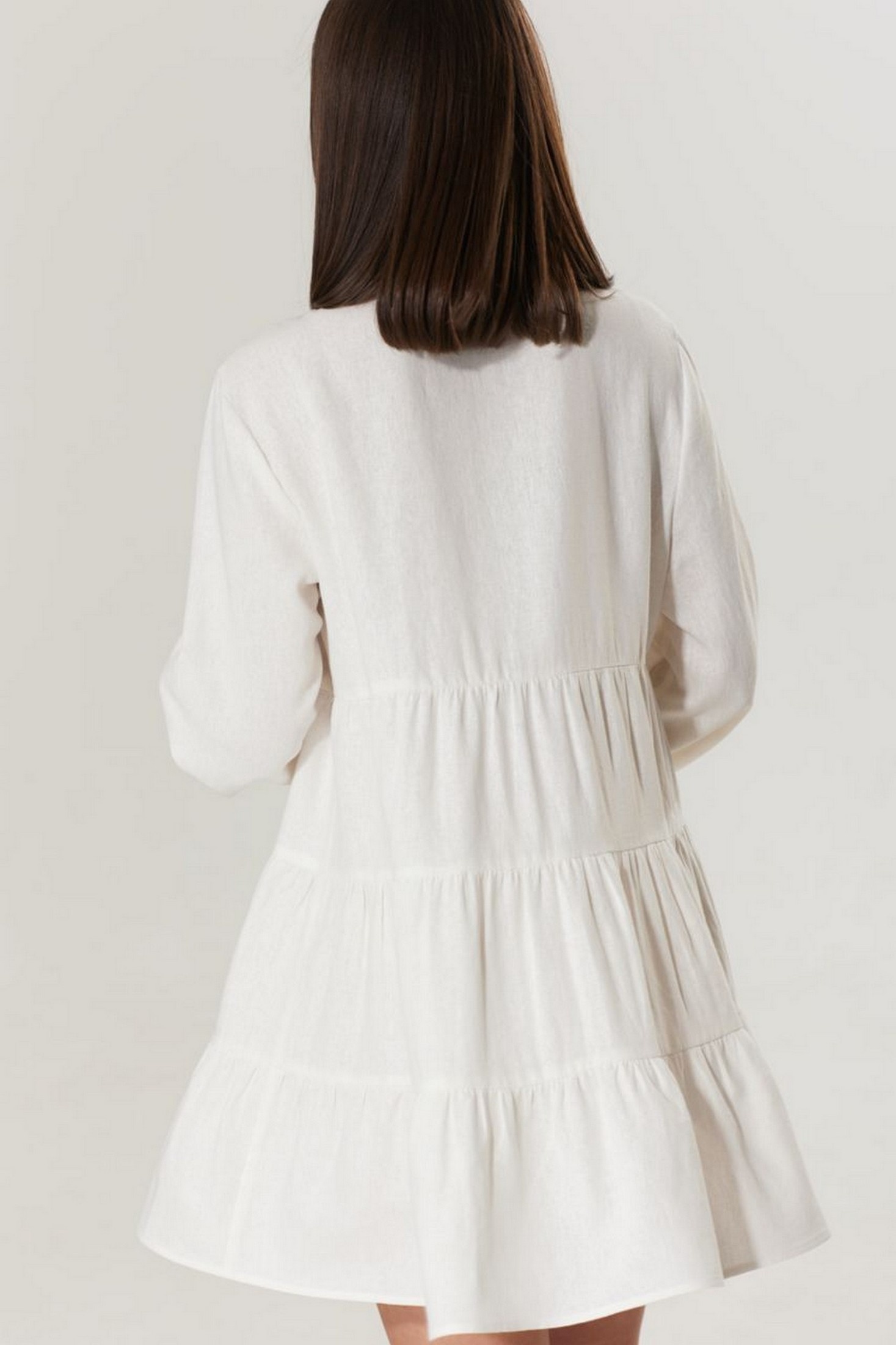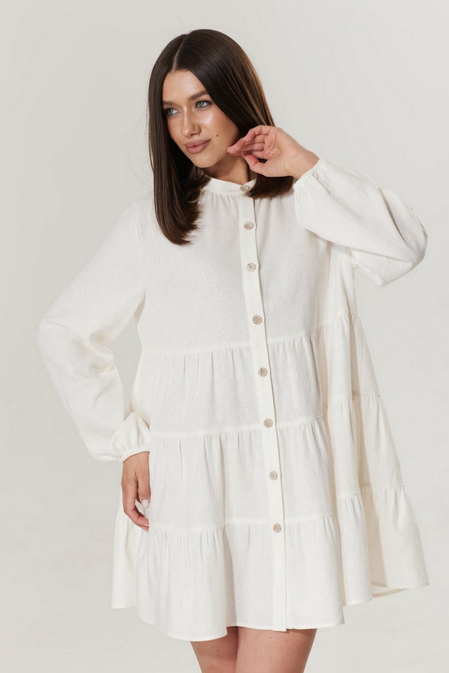 Платье 220 T.N.D от коллекции бренда T.N.D — это изящество и комфорт в одном флаконе. Изготовлено из лёгкого льна с добавлением вискозы, оно идеально подходит для тёплых летних дней. Свободный А-силуэт с тремя ярусами и округлой горловиной на стойке подчёркивает непринуждённый стиль. Центральная застежка на пуговицах и длинные рукава с эластичной тесьмой добавляют практичности. Идеально для повседневного образа или вечеринки, особенно в молочном цвете, который гармонично впишется в любой гардероб. Это платье станет незаменимой частью вашего летнего гардероба.