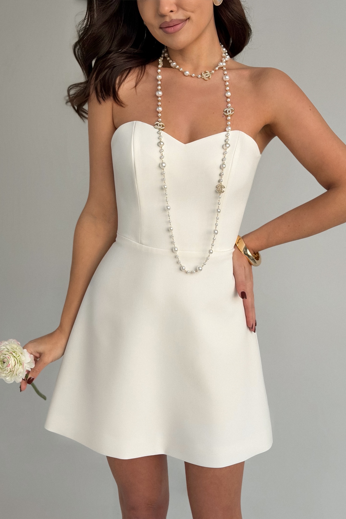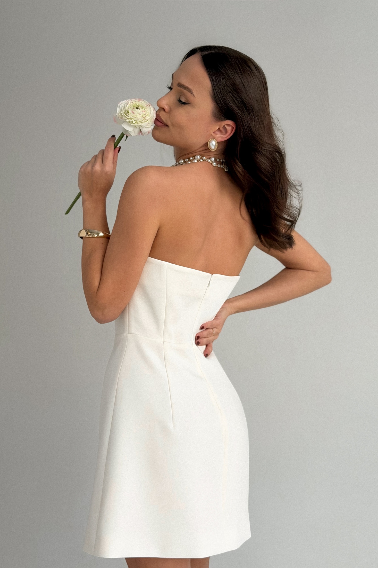 Платье 242-1 T.N.D — это идеальный выбор для создания стильного нарядного образа. Коллекция бренда T.N.D выполнена из текстильной ткани с поливискозной подкладкой, что обеспечивает комфорт и мягкость. Платье-бандо длиной мини подчеркивает плечи и ключицы, создавая изящный силуэт. Модель отрезная по линии талии, с верхом корсетного типа и юбкой силуэта трапеция, слегка расширенной к низу. Застежка на потайную молнию по спинке гарантирует удобство в использовании. Платье выполнено в классическом белом цвете, идеально сочетаясь с разнообразными аксессуарами. Длина по спинке составляет 61 см, а длина по переду от самой высокой точки — 70 см. Это платье станет отличным выбором для любого торжественного мероприятия в теплый сезон.