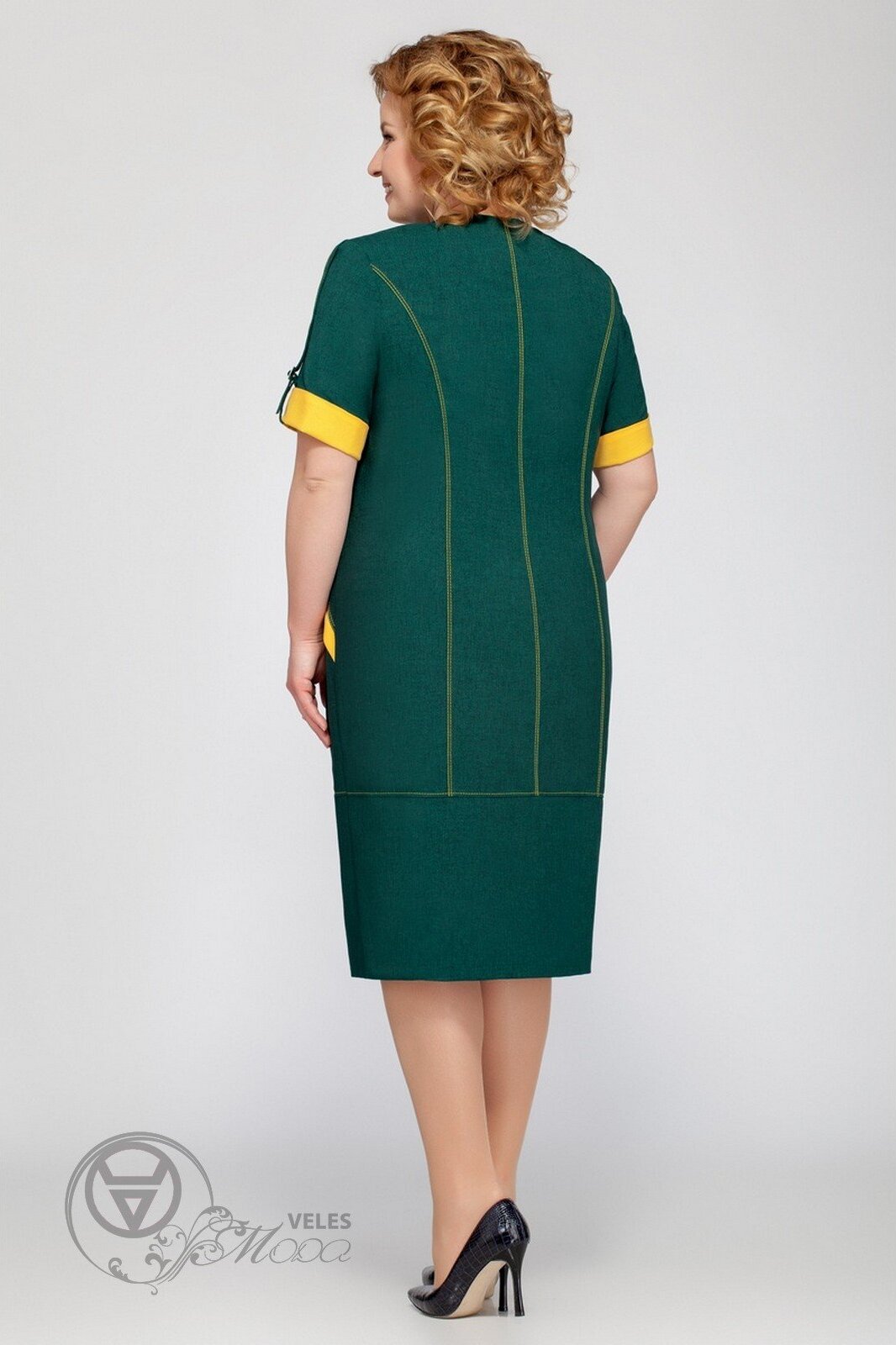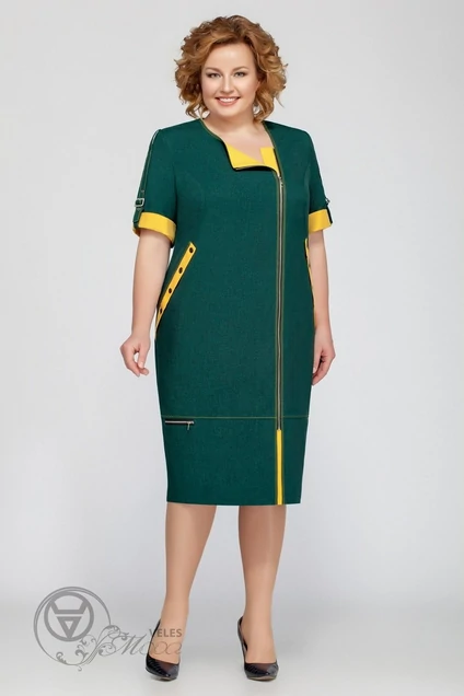 Платье 1201 зеленый+желтый (короткий рукав) Tellura-l