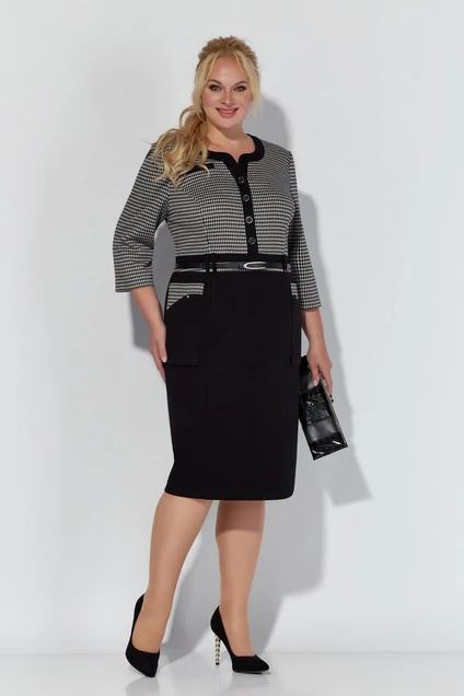 Платье женское, прямого, слегка приталенного силуэта, выполнено из комфортного трикотажного полотна, однотонного и с дизайном «гусиная лапка».