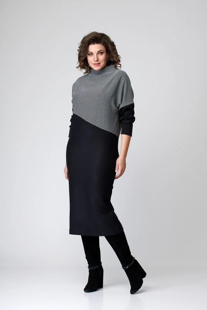 Универсальное удобное платье из комбинированного трикотажного полотна: мелкая полоска сверху, однотонное снизу.
