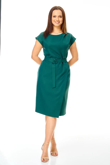 Платье 7751 изумруд Tender and nice — выбор для тех, кто ценит стиль и комфорт. Коллекция бренда Tender and nice сочетает в себе изысканность и практичность. Плотная платьевая ткань с блеском, состоящая из полиэстера, вискозы и лайкры, обеспечивает комфортную посадку и легкий блеск. Полуприлегающий силуэт с глубоким запахом и пояс с пряжкой подчеркивают талию, а молния по спинке делает его удобным для повседневного ношения. Спущенные плечи и овальная горловина добавляют оригинальности. Изумрудный цвет и длина 98 см делают платье идеальным вариантом для праздничных мероприятий или офисных встреч в любое время года.