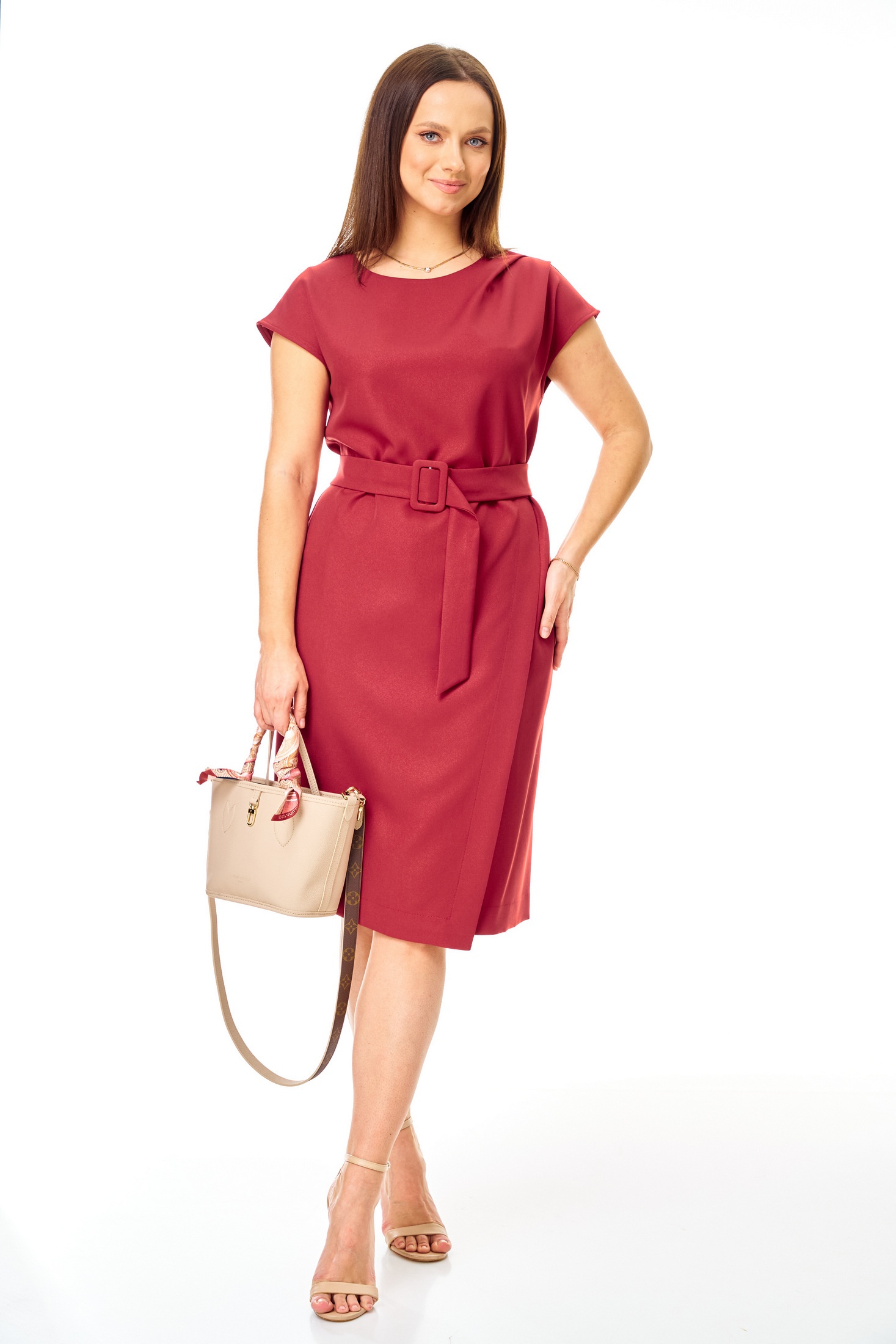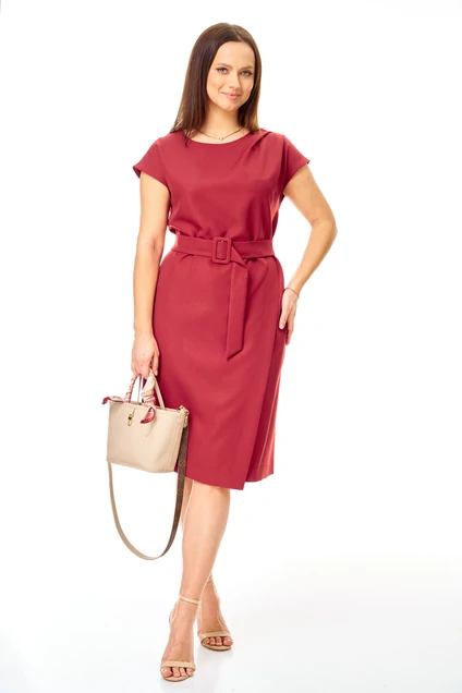 Платье 7751 вишня Tender and nice – это идеальный выбор для особых случаев. Коллекция бренда Tender and nice представляет нарядное платье из плотной ткани с блеском. Полуприлегающий силуэт с глубоким запахом спереди и складками на левом плече подчеркивает женственность модели. Застежка молния по спинке и пояс с пряжкой добавляют функциональности и стиля. Овальная горловина и спущенные плечи придают образу изысканности. Длина платья 98 см, а длина плеча – 18-19 см. Это миди платье идеально подходит для весенне-летнего сезона, его богатый вишневый цвет притягивает взгляды.