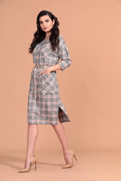 Платье чуть ниже колена ,с накладными карманами по переду.В комплекте декоротивный съемный пояс.