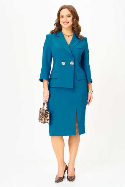 Платье 2315 бирюза Твой Имидж — стильное изделие жакетного типа из коллекции бренда Твой Имидж. Выполненное из качественной плательной поливискозы, оно сочетает комфорт и элегантность. Прилегающий силуэт и асимметричный перед с разрезом выгодно подчёркивают фигуру. Декоративные элементы, как крупные пуговицы и листочки, придают оригинальности. Подходит для осенне-зимнего сезона и идеально для офисных будней и деловых встреч. Бирюзовый цвет освежает образ, добавляя яркости. Длина миди и застёжка на потайную молнию делают платье удобным и практичным для повседневного ношения. Длина рукава 3/4 добавляет универсальности.