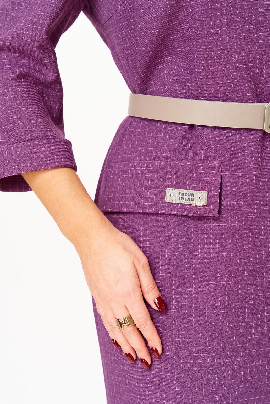 Платье 2323 сиреневый в клетку Твой Имидж — это стильное платье полуприлегающего силуэта, идеально подходящее для офисной работы и других мероприятий. Коллекция бренда Твой Имидж предлагает современное прочтение классики: асимметричная застежка на пуговицы, погоны на плечах, нагрудные вытачки и съёмный ремень придают модели элегантность. Изготовленное из вискозы с добавлением полиэстера, это платье удобно в носке и приятно на ощупь. Ткань в клетку делает образ утонченным, а фурнитура и ремень в цвет гармонично дополняют общий вид. Длина миди и рукава 3/4 служат отличным решением для межсезонья.