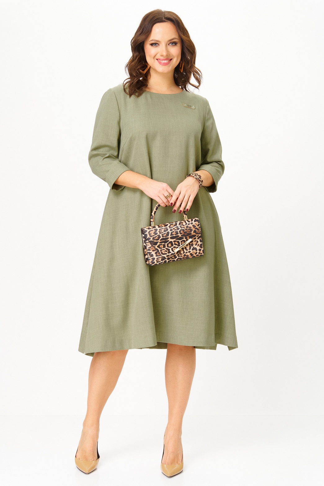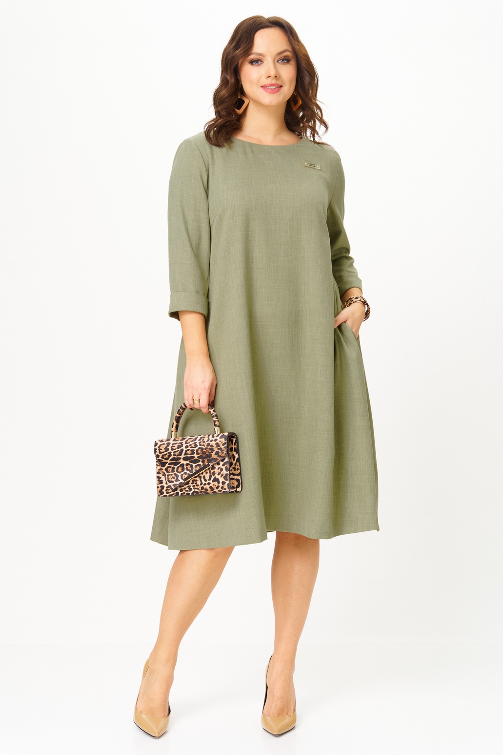 Платье 2333 фисташка Твой Имидж представляет собой стильный вариант для повседневной носки. Коллекция бренда Твой Имидж выполнена из поливискозной ткани, что обеспечивает комфорт и легкость. Трапециевидный фасон с миди длиной и втачными рукавами 3/4 делает платье универсальным выбором как для офиса, так и для вечеринки. Декоративная нашивка на груди и шнуровка на спинке добавляют уникальности, а карманы в боковых швах добавляют функциональности. Фисташковый цвет идеально подходит для весны и лета, подчеркивая свежесть и стиль вашего образа.
