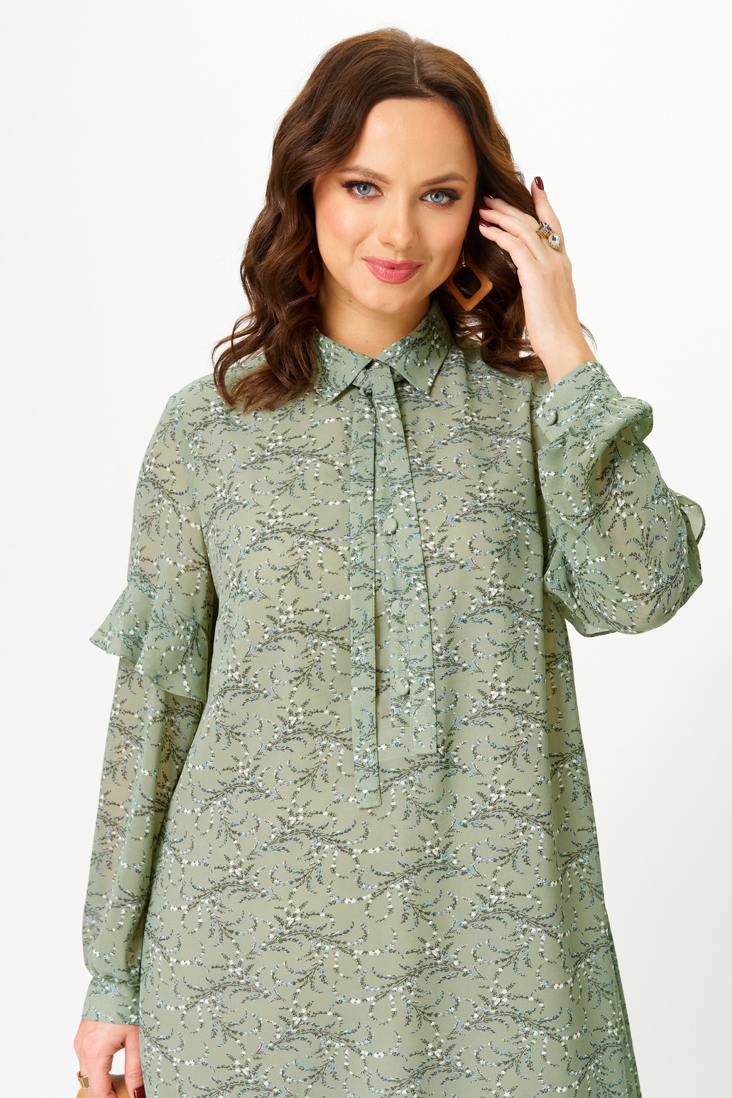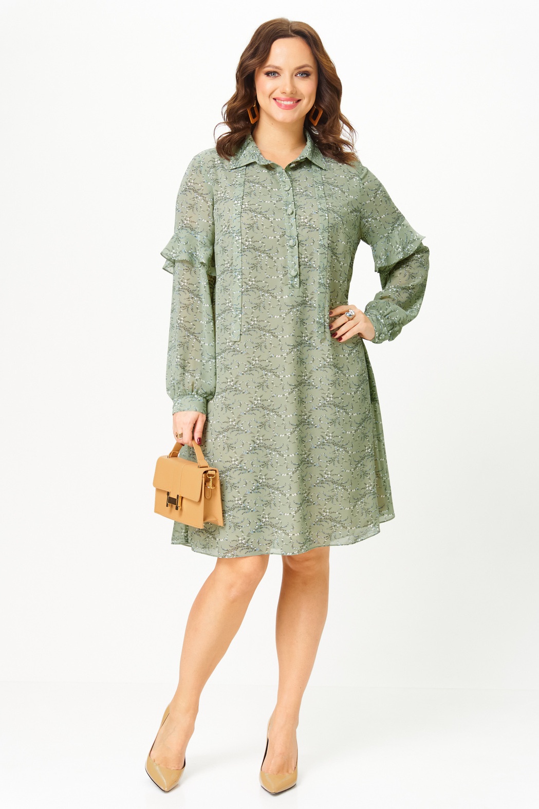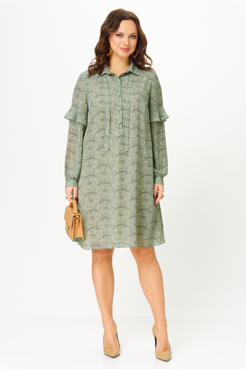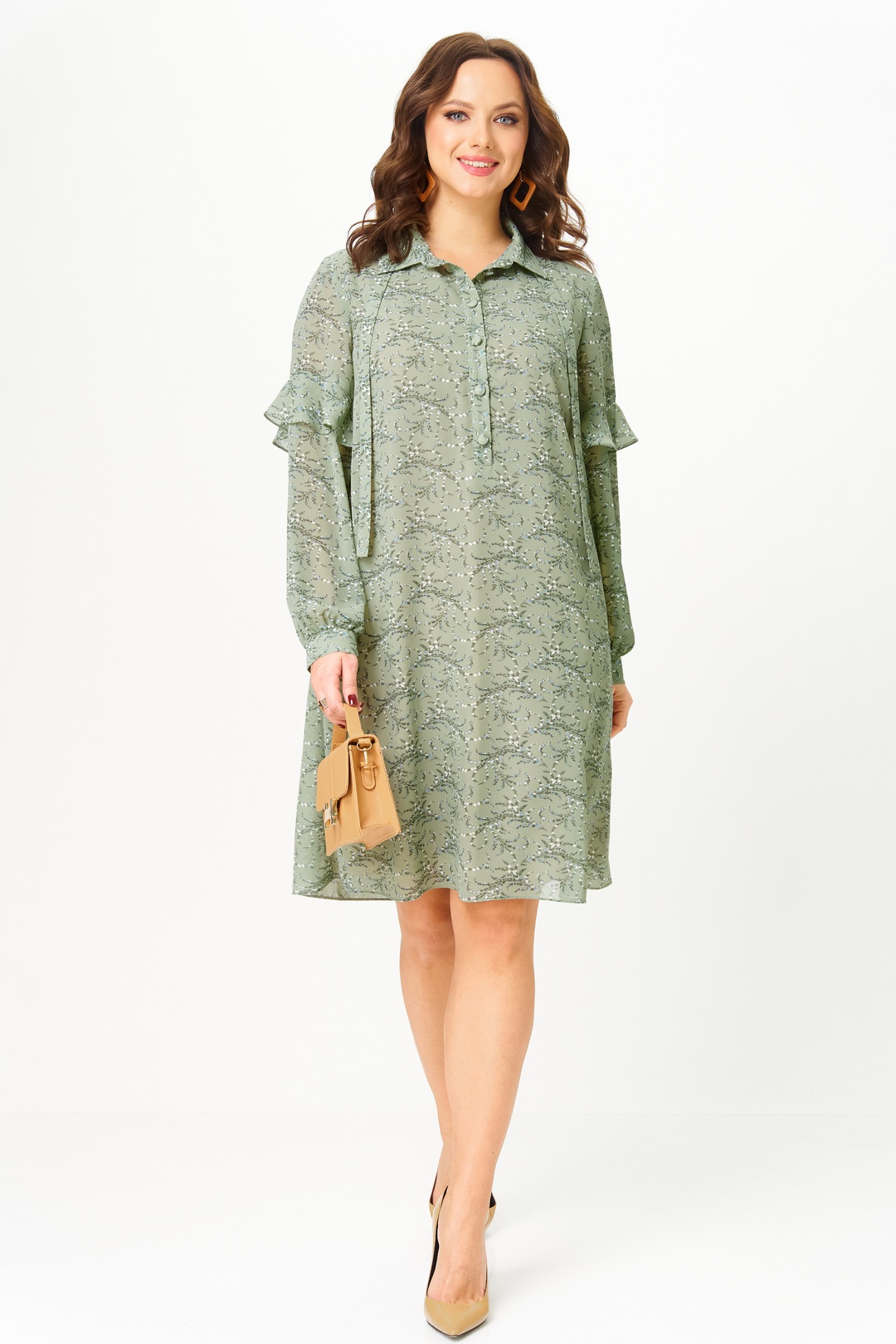 Платье 2338 фисташка Твой Имидж — это стильное изделие из итальянского шифона, представленное в коллекции бренда Твой Имидж. Платье миди длины, прямого силуэта, с длиной рукавами и декоративными воланами. Центральная застежка на пуговицах до линии талии и рубашечный воротник с декоративной завязкой отражают утонченный стиль этого изделия. Карманы в боковых швах добавляют функциональности. Платье идеально подходит для повседневных мероприятий в теплое время года. Фисташковый цвет и легкий материал делают его универсальным выбором как для прогулок, так и для встреч с друзьями. Комбинируйте его с каблуками или сандалиями для создания различных образов.