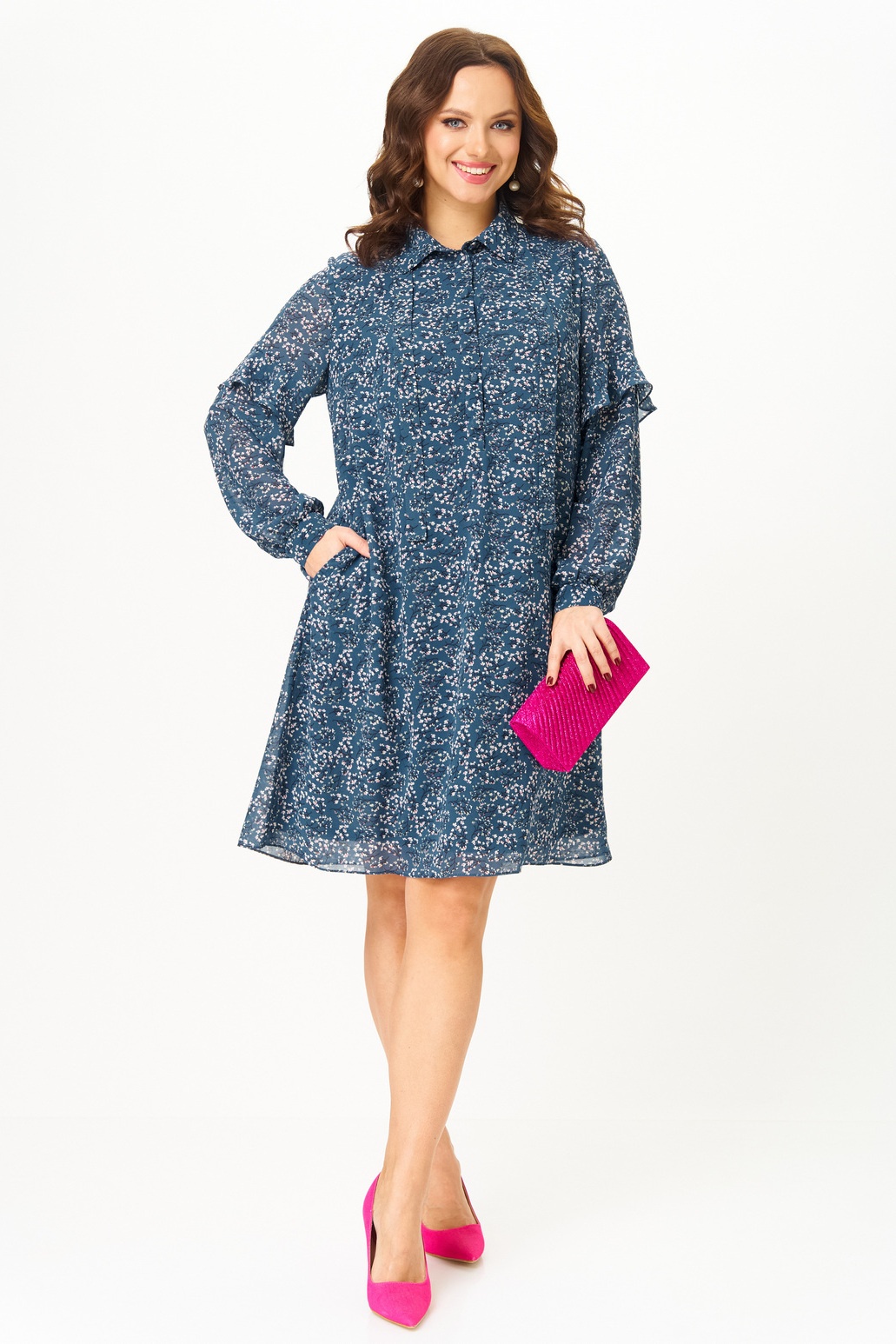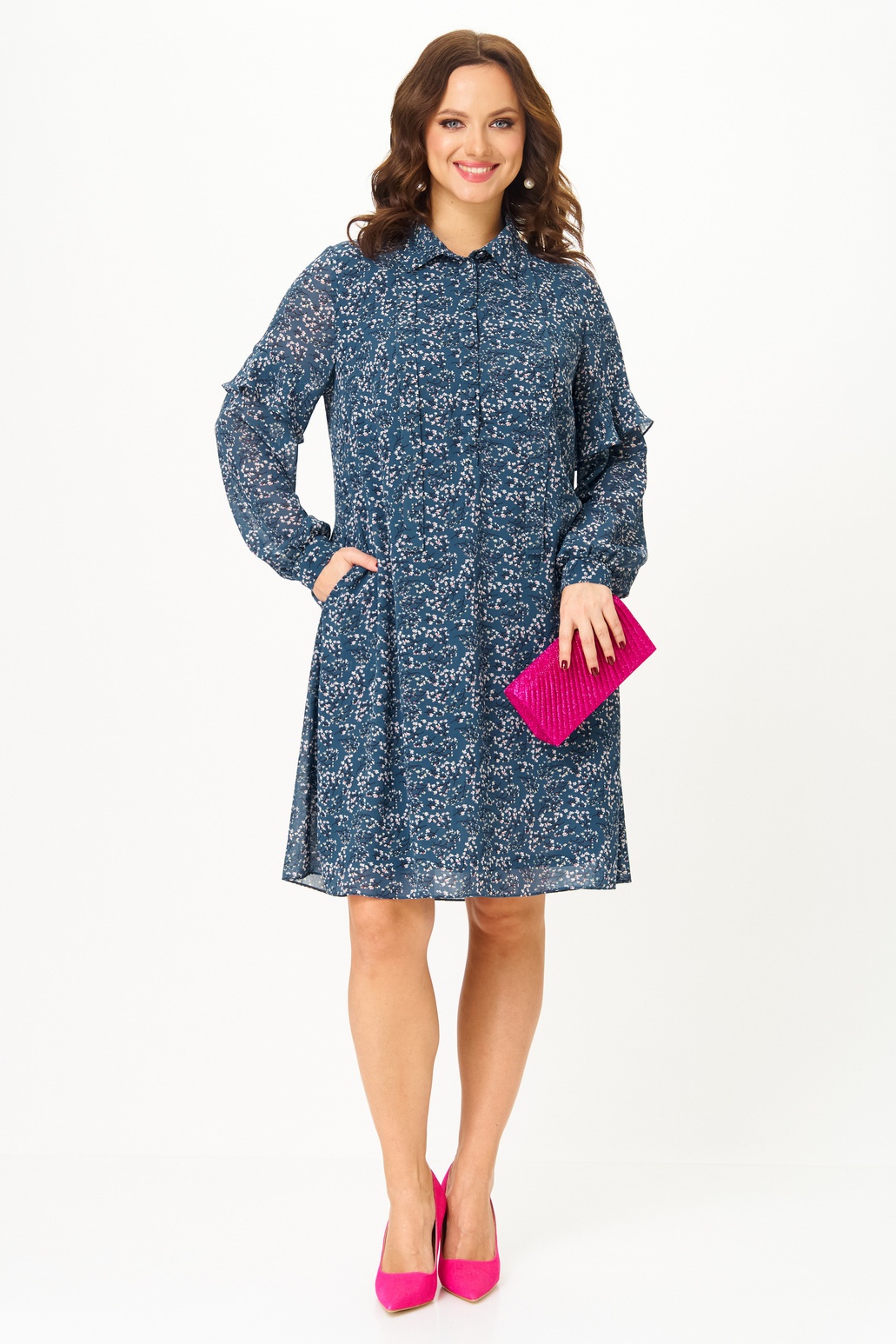 Платье 2339 маренго Твой Имидж — это идеальный выбор для вашего гардероба. Коллекция бренда Твой Имидж предлагает миди-платье прямого силуэта из итальянского шифона, которое отличается элегантностью и комфортом. Воротник рубашечного типа и завязка добавляют утонченности, в то время как декоративный волан на рукавах придает игривую нотку. Длинные рукава и практичные карманы делают платье универсальным для повседневного использования. Оно идеально подходит для весенне-летнего сезона и может быть надето как на работу, так и на прогулку или вечеринку. Принт в спокойных оттенках дополняет образ, делая его стильным и современным.