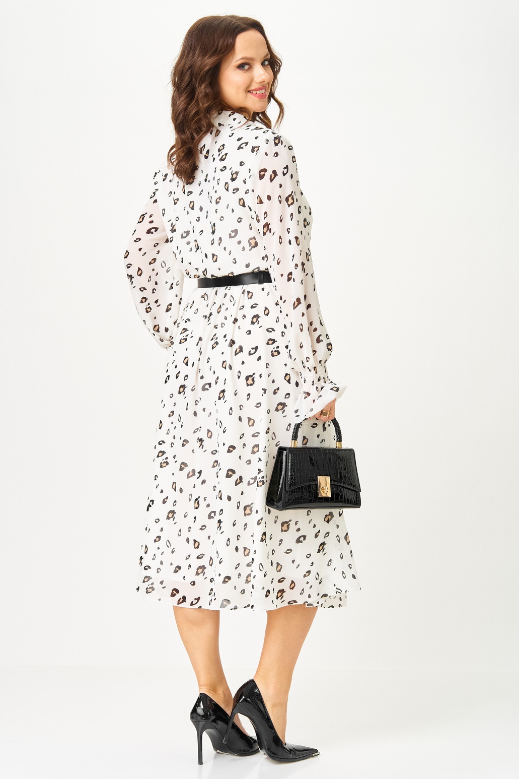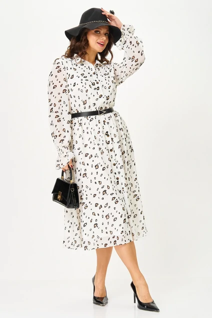 Платье 2342 молочный с принтом Твой Имидж — великолепное воплощение стиля от коллекции бренда TVOI IMIDJ. Изготовлено из итальянского шифона, это платье обладает легкостью и воздушностью, идеально подходя для любых сезонов. Полуприлегающий силуэт с длиной 'мидакси' и отрезное по линии талии на резинке создают женственный образ, а декоративный пояс добавляет акцент на талии. Центральная застёжка на пуговицы и воротник рубашечного типа придают изделию классический вид. Длинные рукава с объёмом в нижней части гармонично завершают образ. Универсальный молочный цвет с принтом гармонично дополнит гардероб для офиса, повседневных прогулок или праздничных мероприятий.