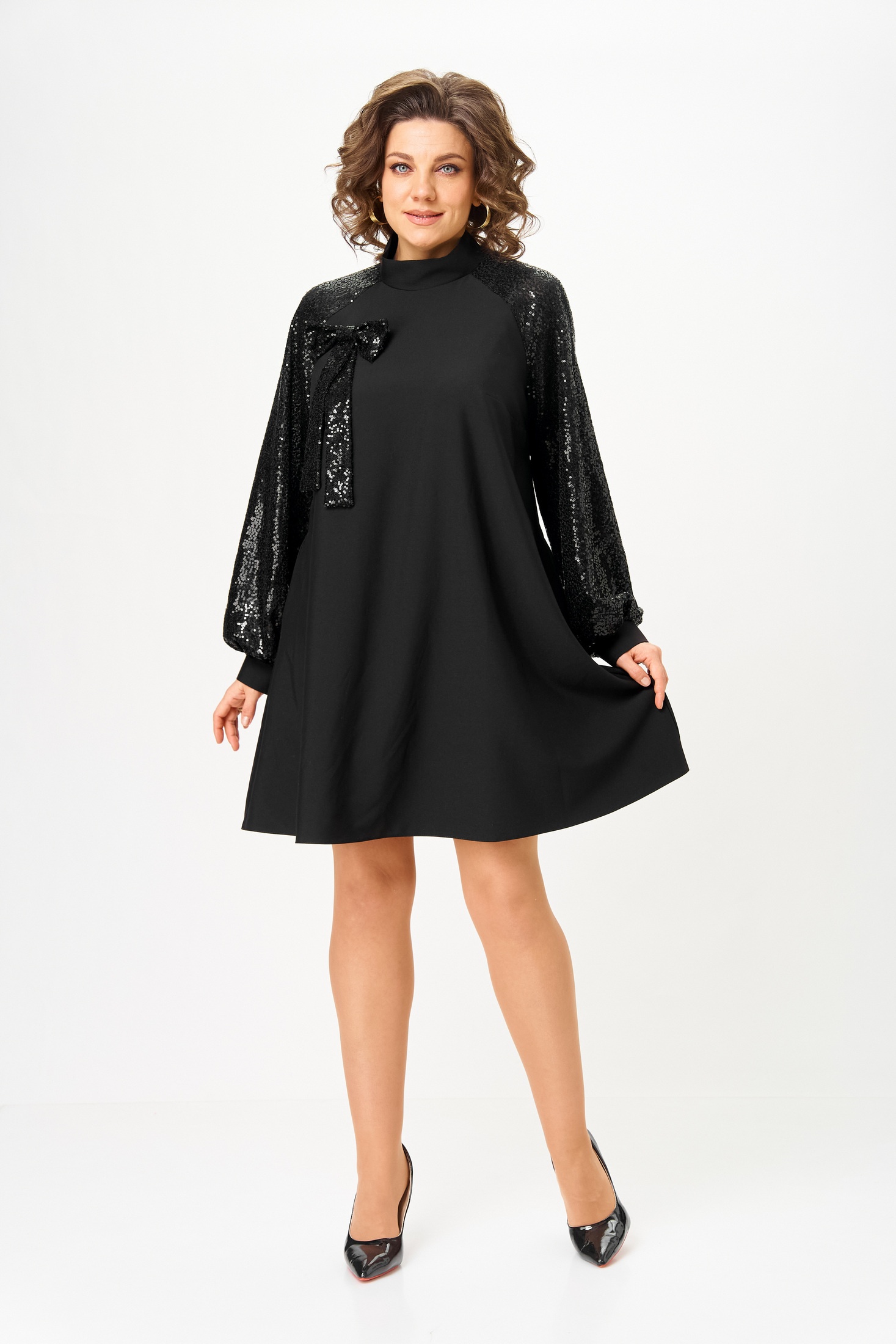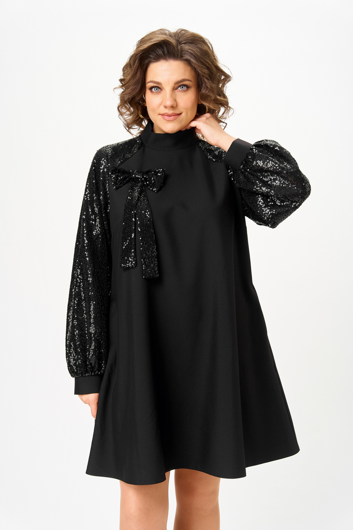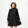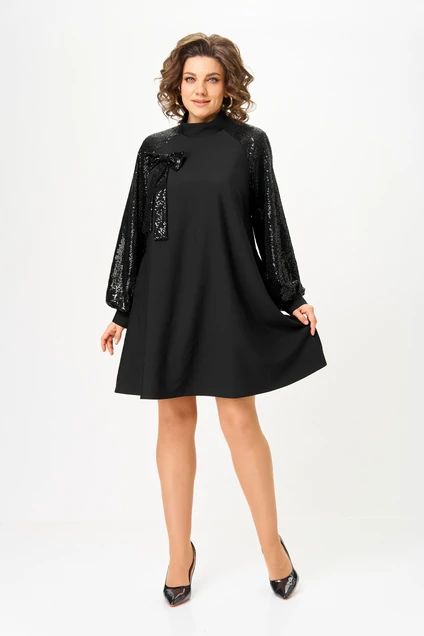 Платье 1100 черный V&N fashion привлекает внимание своим свободным силуэтом и элегантным дизайном. Коллекция бренда V&N fashion предлагает вам изысканную комбинацию полиэстера и вискозы с добавлением спандекса для комфортной посадки. Платье оснащено горловиной-стойкой и застежками на петли-пуговицы по спинке, что придаёт ему стильный вид. Длина рукава на манжете и карманы в боковых швах добавляют функциональности. Украшение в виде съемного банта с пайетками делает его идеальным выбором как на каждый день, так и для вечера. Это платье черного цвета идеально подходит для осени благодаря легкому, но теплому материалу.