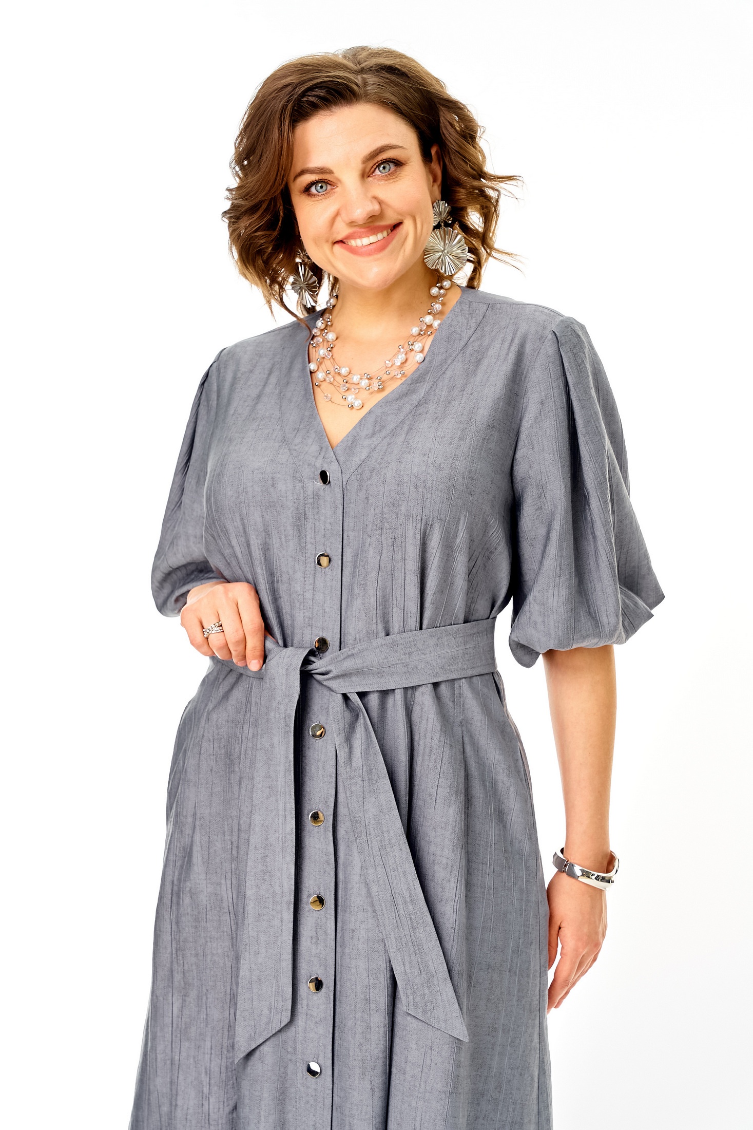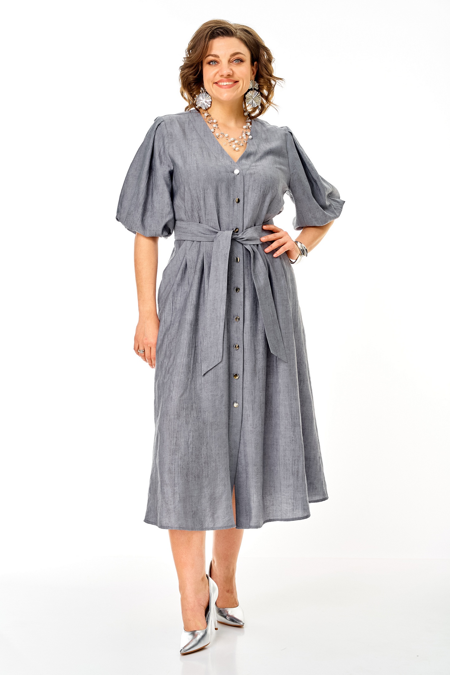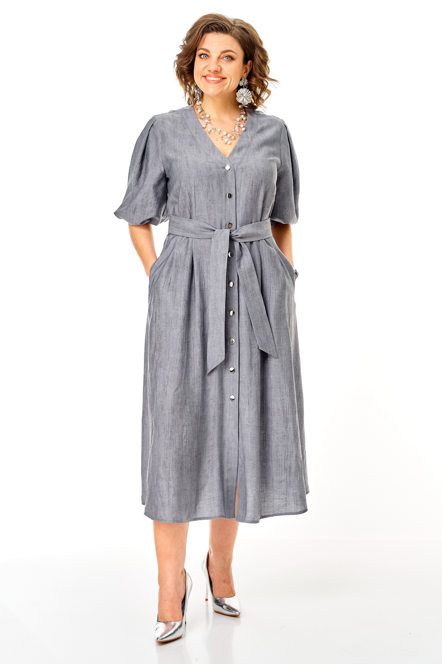 Платье 1275 стальной — это идеальное решение для модного повседневного гардероба. Коллекция бренда VI ORO радует современным дизайном и комфортом. Изготовлено из легкой вискозы, что делает платье приятным к телу и обеспечивает свободное движение. Свободный фасон с расклешением к низу и V-образным вырезом создает женственный силуэт, добавляя изюминку вашему образу. Декоративные детали как отрезная планка с петлями-пуговицами и карманы в боковых швах подчеркивают удобство и функциональность. Это платье подходит для весны и лета и прекрасно подходит для каждого дня или прогулок с друзьями, оформлено в универсальном стальном цвете, который легко комбинируется с другими цветами гардероба.