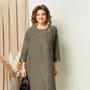 Комфортное стильное платье из стеганого текстиля и трикотажа, прямого силуэта с потайной застежкой на пуговицы и карманами. Рукав платья длинный, на цельнокроеной основе. Горловина- полустойка с застежкой на кнопки. Длина платья по центру спинки- 105 см. Брошь комплекте изделия.