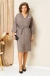 Элегантное лаконичное платье из эластичного трикотажа прямого полуприлегающего силуэта с акцентной V-образной горловиной. Центральный элемент отделки платья- вставки из кожи и необычная съемная брошь для легкости образа. Длина платья немного за колено, уместная в большинстве ситуаций. Спереди небольшой вырез для максимального удобства. Длина платья по центру спинки- 104см. Декоративный и функциональный пояс- в комплекте изделия.