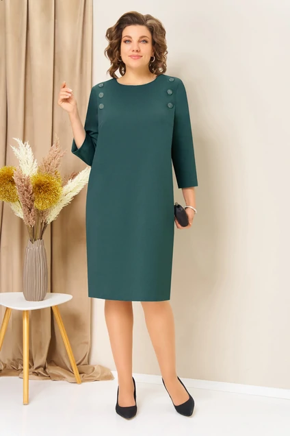 Нарядное платье-футляр полуприлегающего силуэта, создающее лаконичный и уверенный образ. Ткань с эффектом стрейч выглядит безупречно и дает максимальный комфорт при движении. Рукав платья втачной, длиной 3/4. Плечевая линия оформлена с помощью небольших подплечников. Длина платья по центру спинки- 99 см. Идеальный вид плаьтю придают пришивные симметричные украшения .