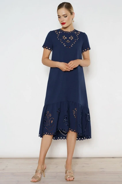 Летнее синее платье с перфорацией - это настоящий шедевр, созданный для того, чтобы подчеркнуть вашу красоту и элегантность. Оно выполнено из легкого и мягкого материала, который обеспечивает комфорт и свободу движений. Перфорация на платье добавляет ему легкости и воздушности, а также создает эффектный образ, который притягивает взгляды окружающих. Синий цвет придает платью глубину и насыщенность, создавая стильный и изысканный образ. Это платье идеально подходит для летних дней, когда хочется наслаждаться теплом и красотой природы.